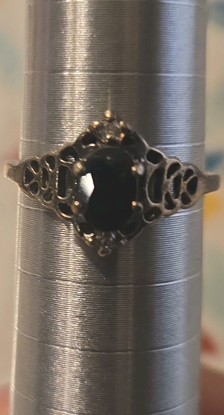 как выглядит Sterling Silver 925 Oval Black Sapphire Prong Cocktail Ring Size 9 фото