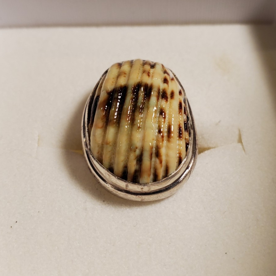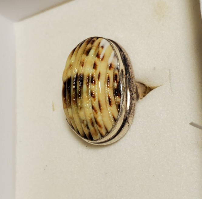 как выглядит Genuine Sterling Silver with Ribbed Natural Shell Centerpiece Size 7 Ring 8.4g фото