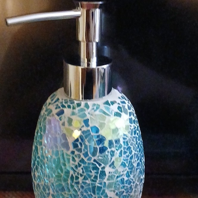 как выглядит Mosaic Glass Bathroom Accessory Set Blue Green White Purple Soap Dispenser Jar фото