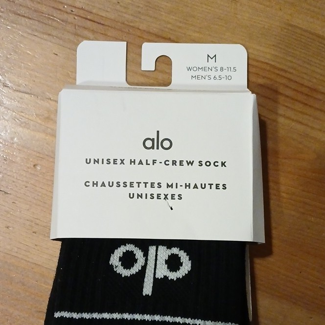 alo Half-Crew Socks Black White Logo Women's Medium Half Crew