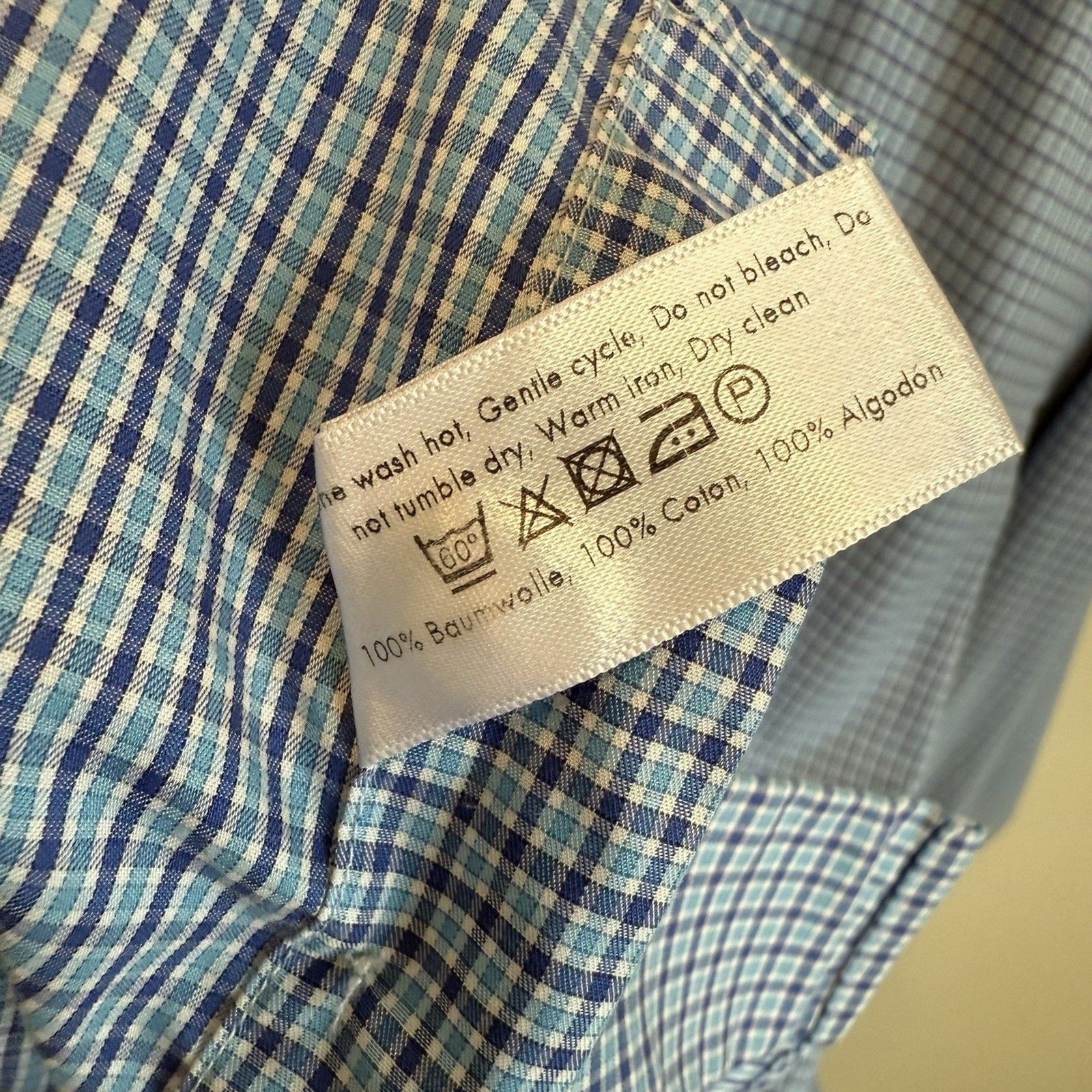 как выглядит Eton 39 / 15.5 Check Signature Oxford Slim Fit Dress Shirt Blue 100 Cotton EUC фото