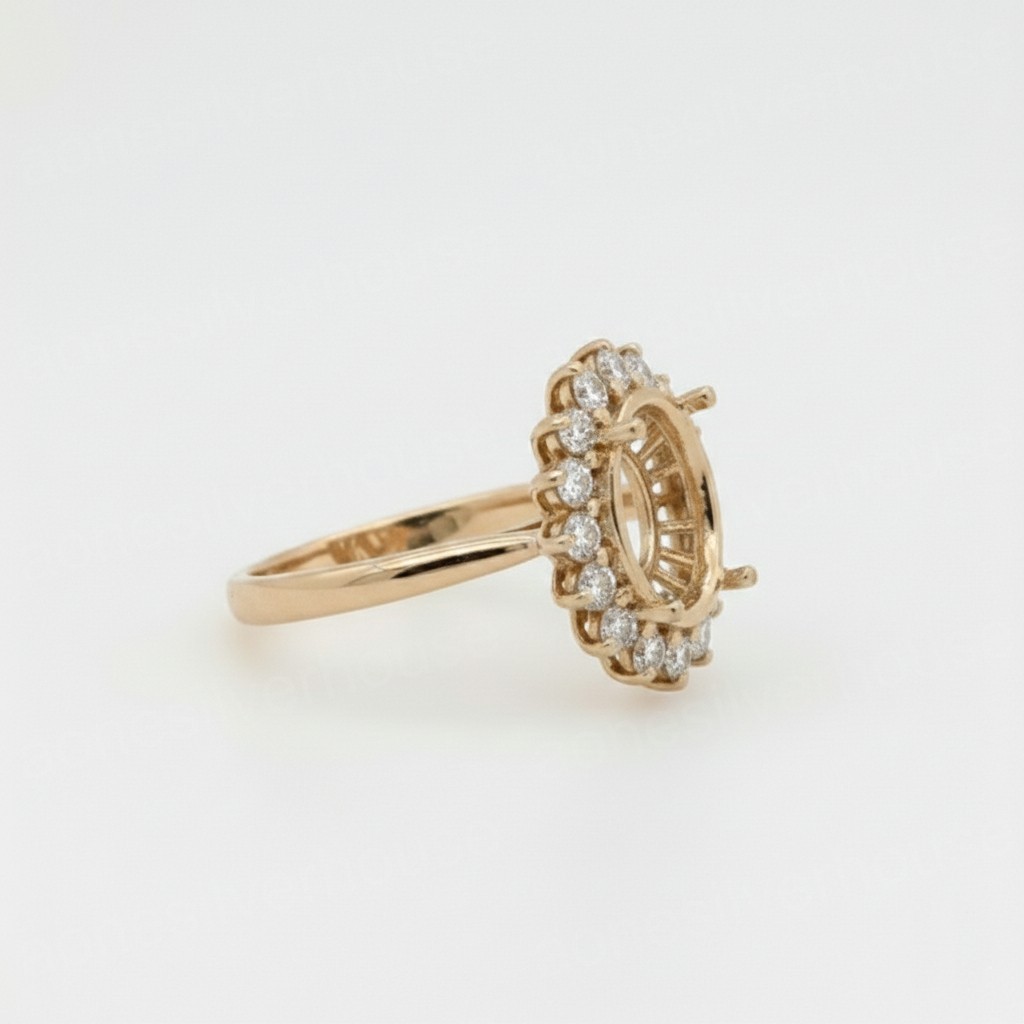 Sterling Silver On Gold Plated 8x10mm Oval Semi Mount Ring-CZ Accent Halo Ring