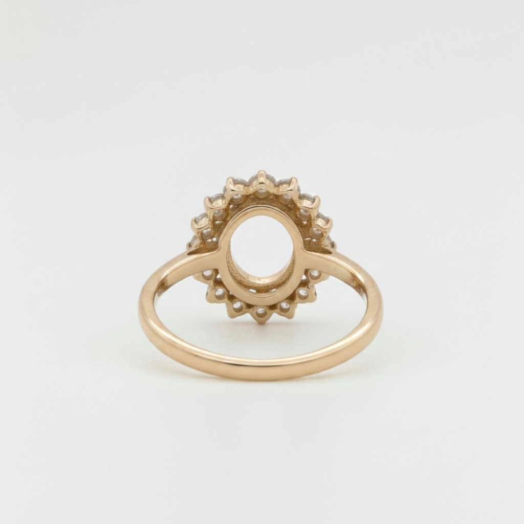 как выглядит Sterling Silver On Gold Plated 8x10mm Oval Semi Mount Ring-CZ Accent Halo Ring фото