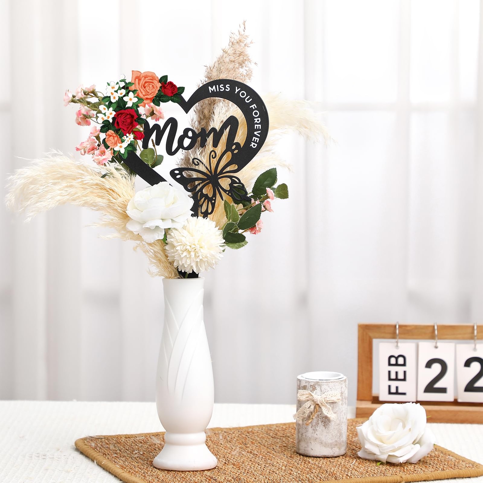 Memorial Grave Markers for Mom,Heart Grave Decorations for Cemetery,Butterfly...