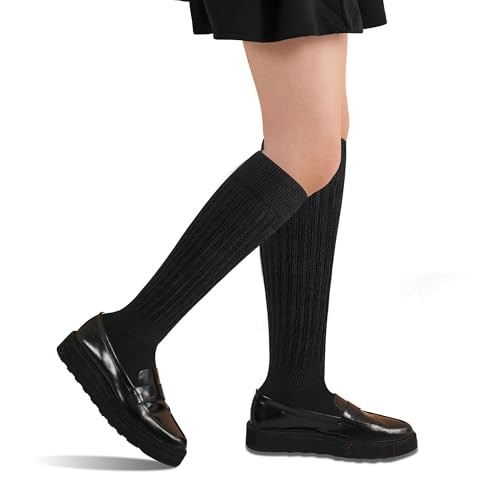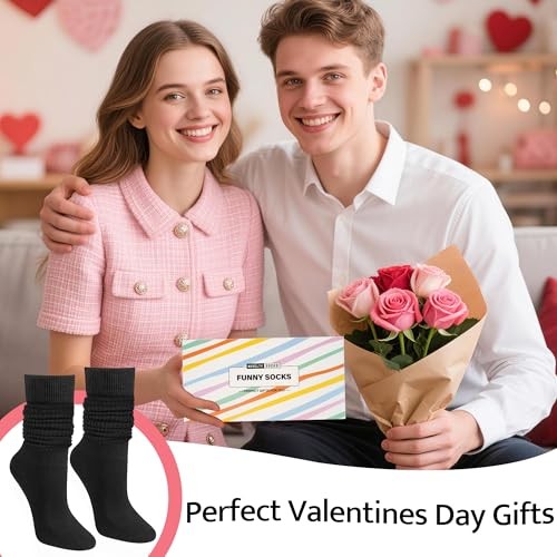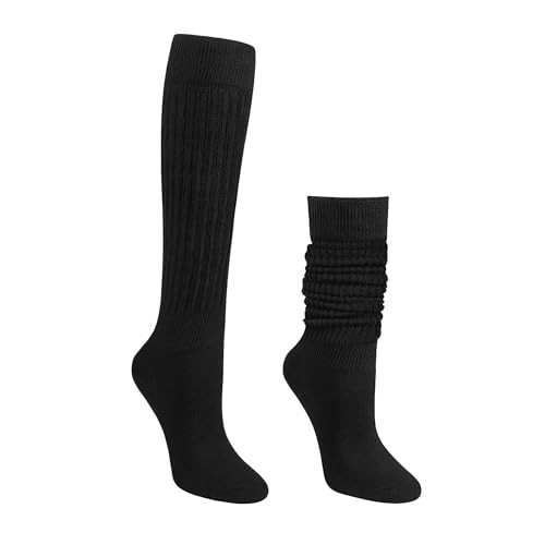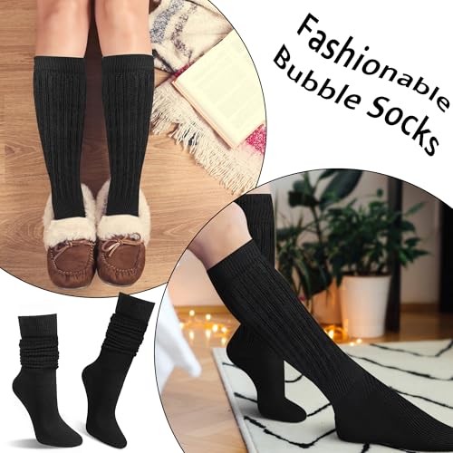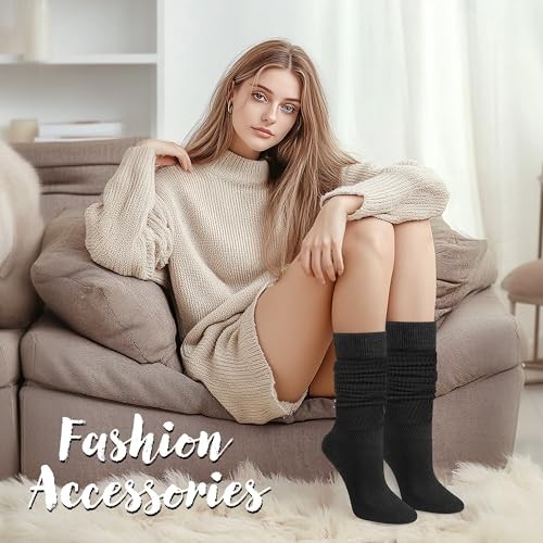 Slouch Socks for Women,Knee High Long White Slouchy Socks for Girls Black