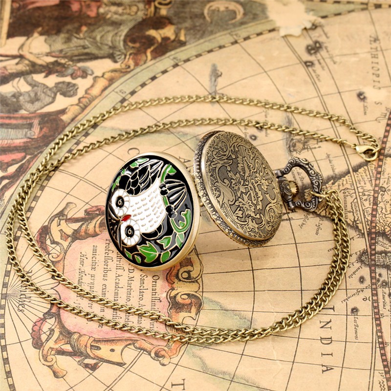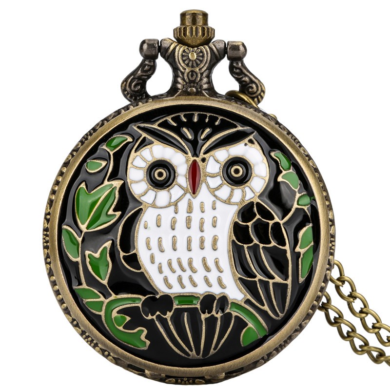 Antique Owl Design Unisex Quartz Analog Pocket Watch Necklace Chain Timepiece