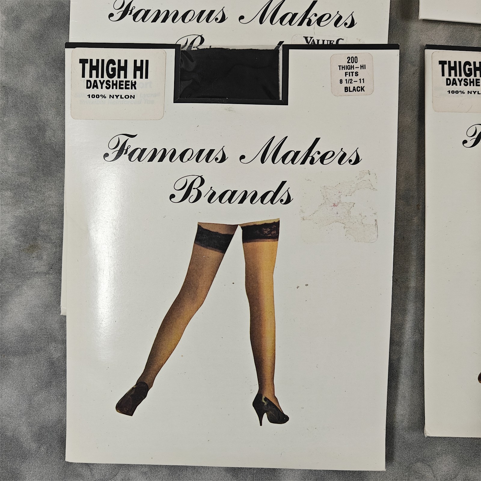 Lot 6 VTG Thigh High Stockings Famous Makers Support Black 8.5-11 NOS