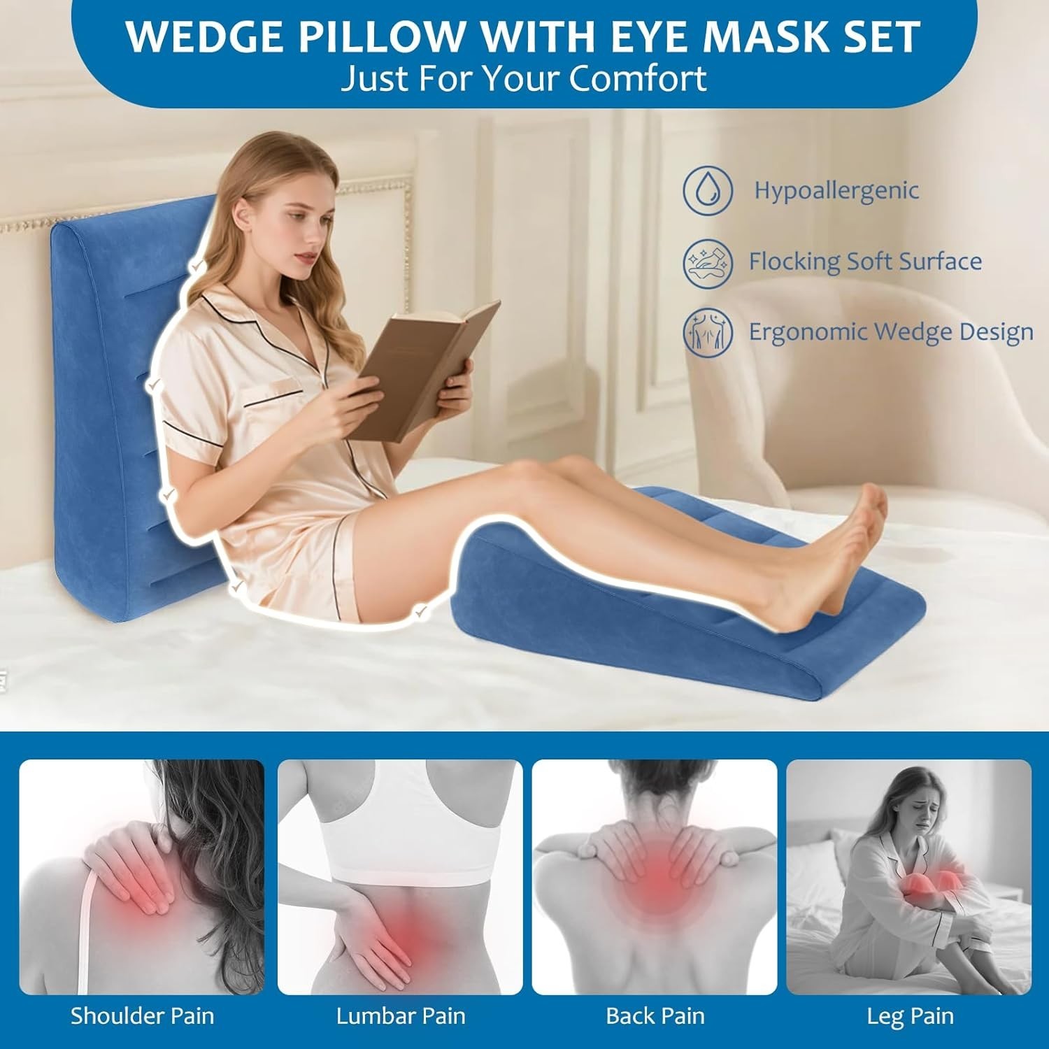 как выглядит for Traveling Sleeping - 7.1 Inch Bed Wedge Pillow for Acid Reflux, Snoring... фото
