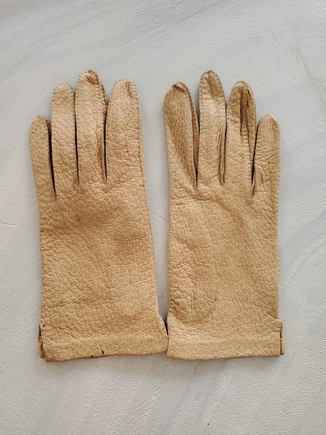 как выглядит Vintage Tan Suede Leather Womens Gloves фото