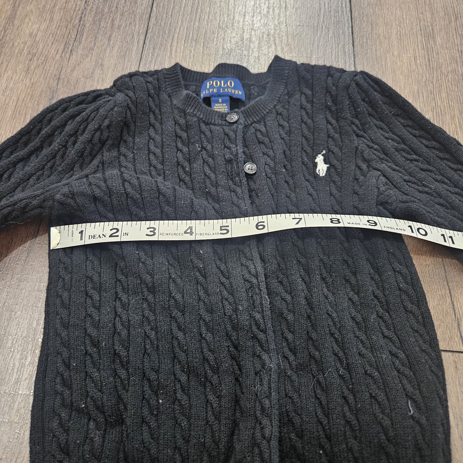 как выглядит Polo Ralph Lauren Girls Cable Knit Long Sleeve Buttoned Cardigan Black Size 5 фото