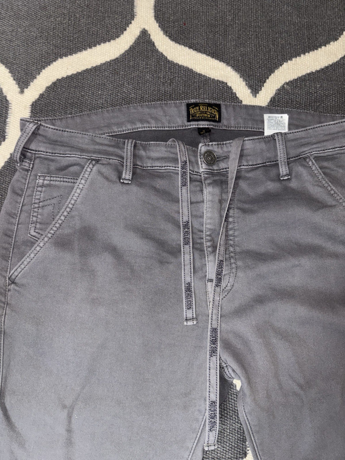 как выглядит True Religion Jogger Cotton Twill Pants Gray Button Drawstring Pockets Mens 36 фото