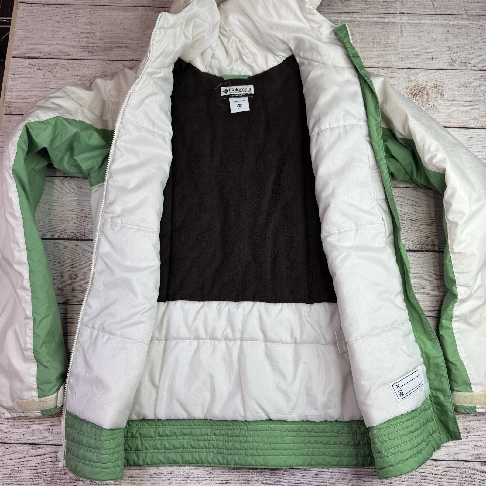 Columbia Youth 18/20 Hooded Winter Coat Jacket White Green Fleece Lined READ