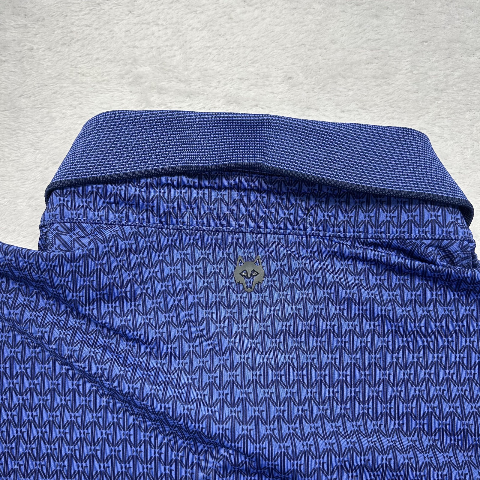 как выглядит Greyson Polo Shirt Mens L Blue Geometric Golf Performance Stretch Short Sleeve фото
