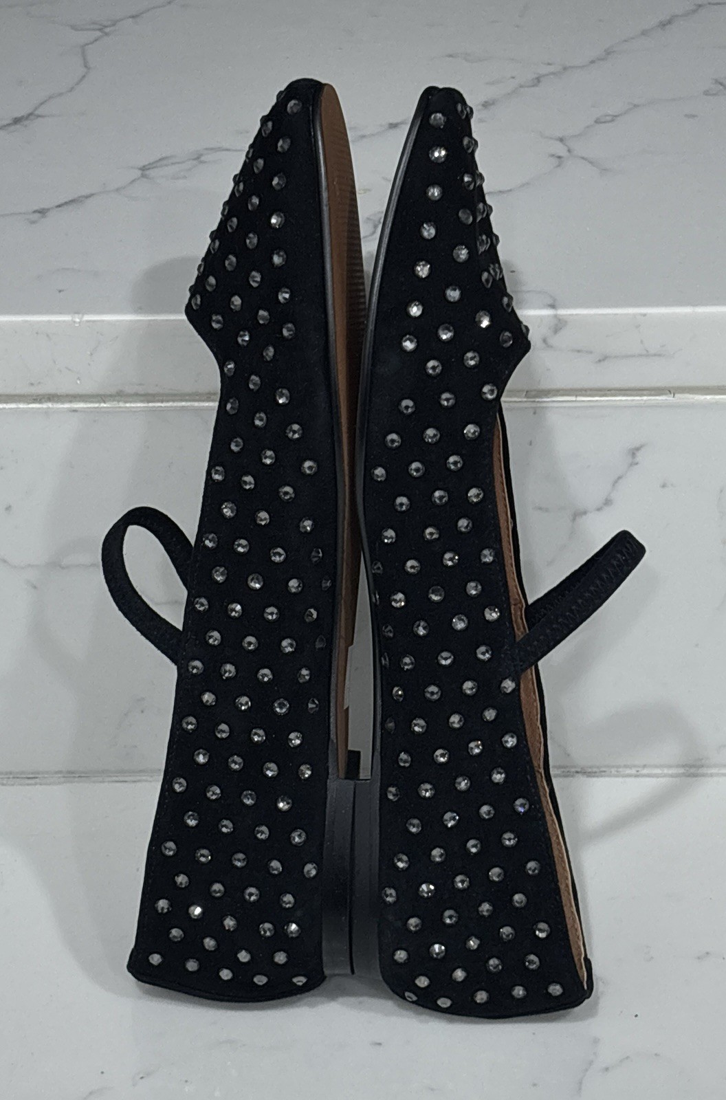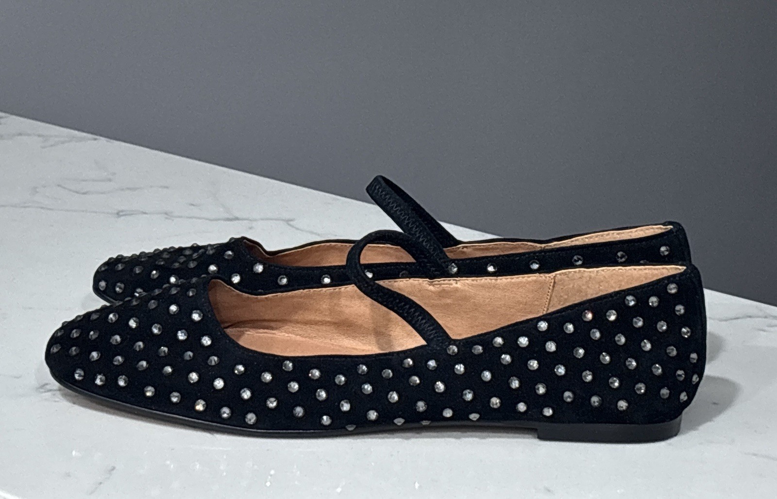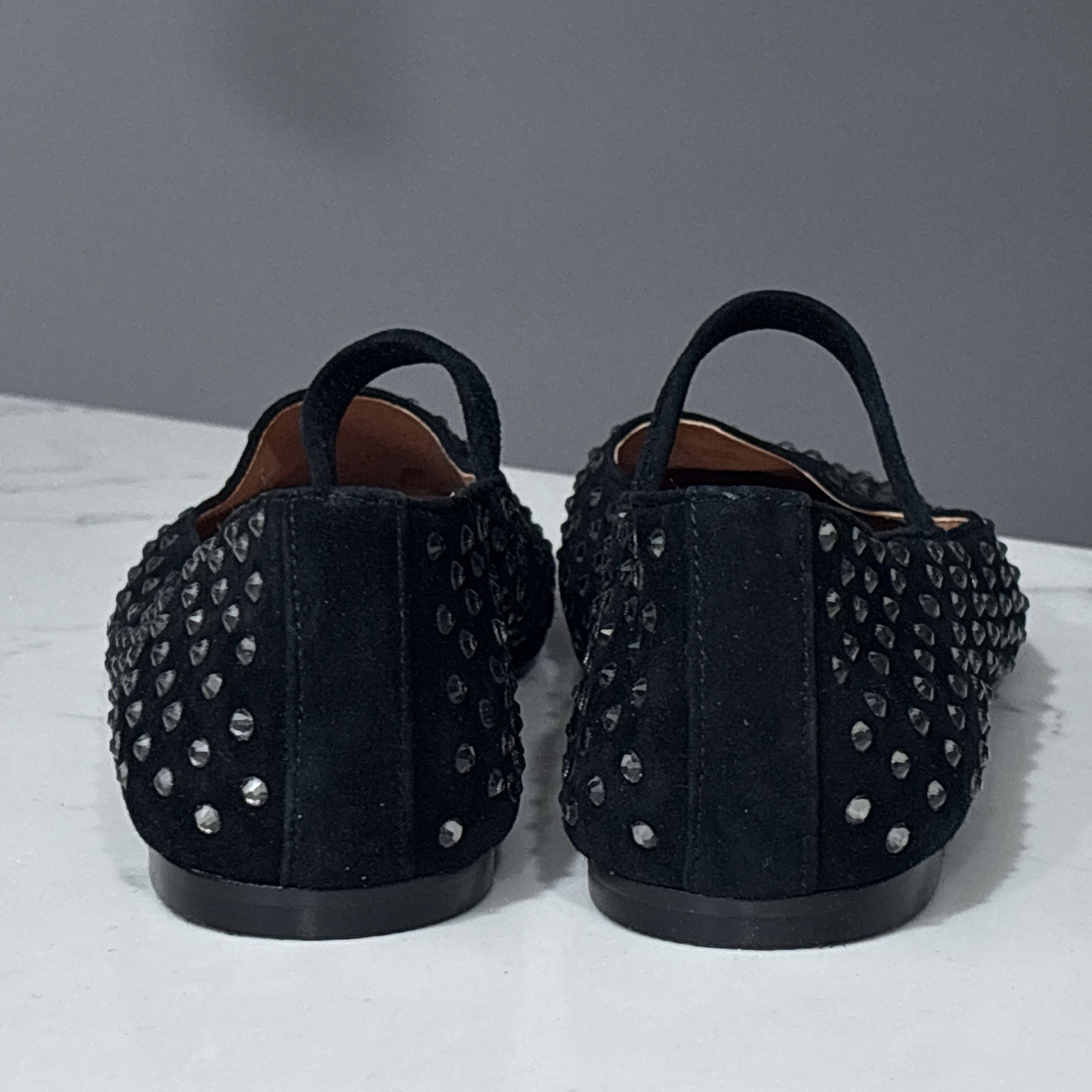 как выглядит Madewell Greta Ballet Flat Womens 10.5 Black Suede Leather Crystal Rhinestone фото