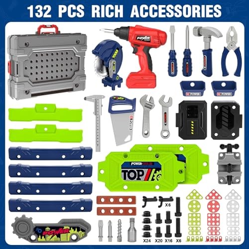 Kids Tool Bench Set with Electric Drill and Realistic Tools, Construction