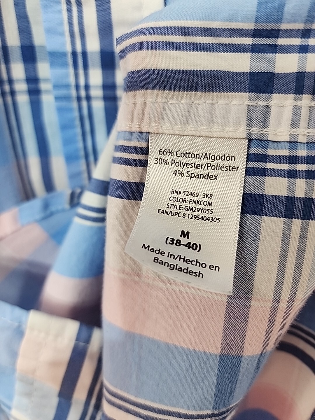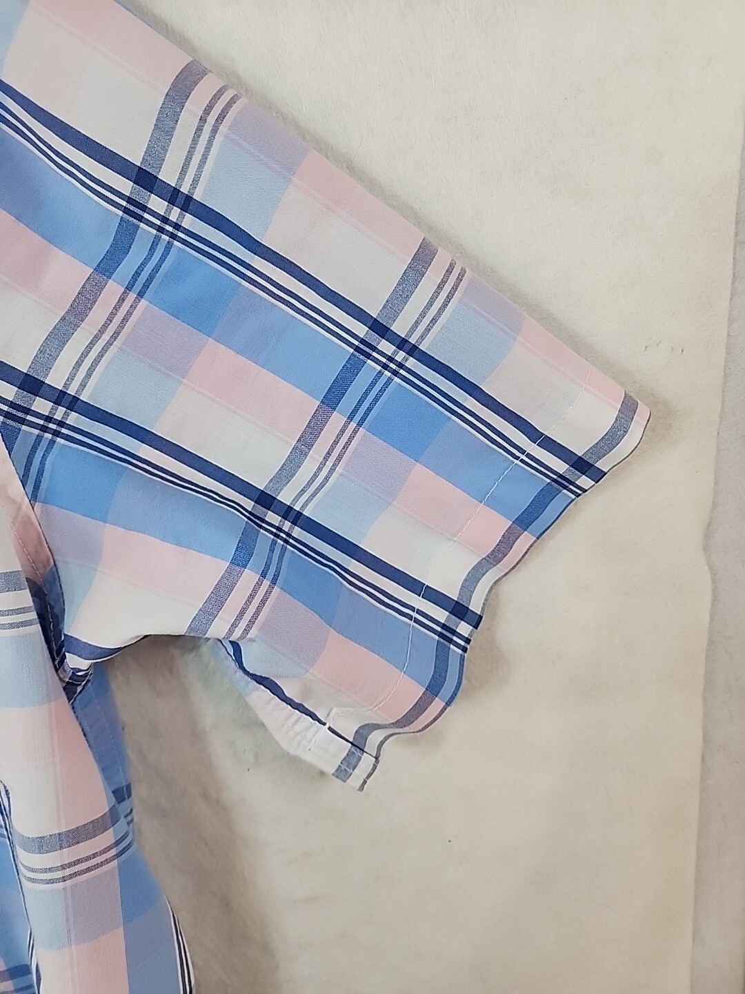 George Mens Medium Blue Plaid Classic Fit Short Sleeve Shirt