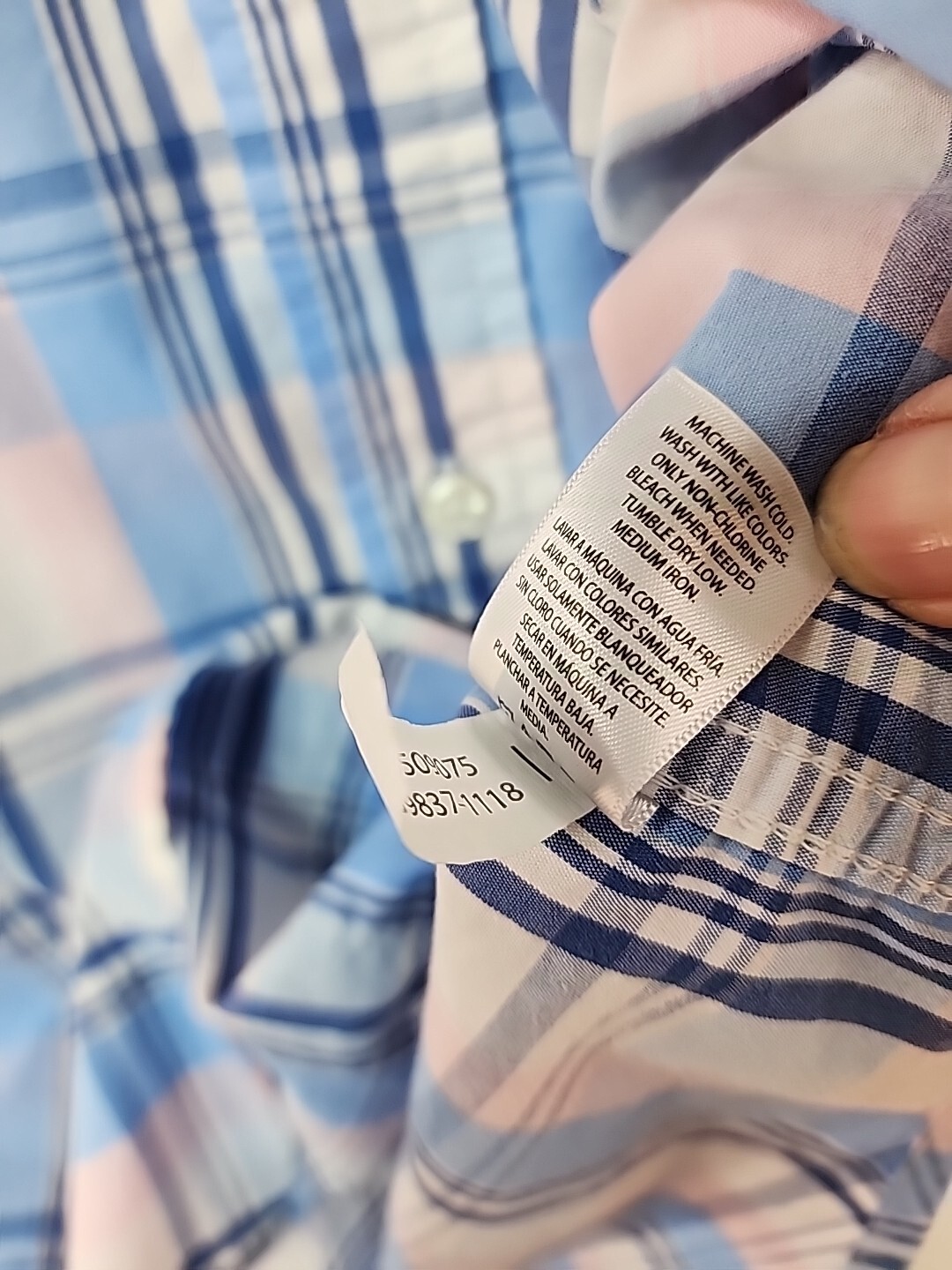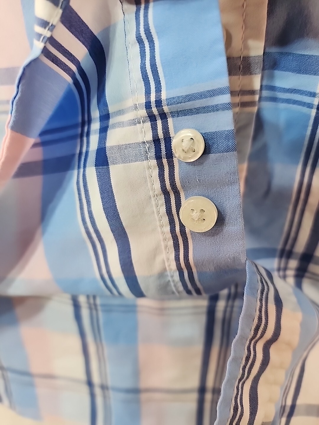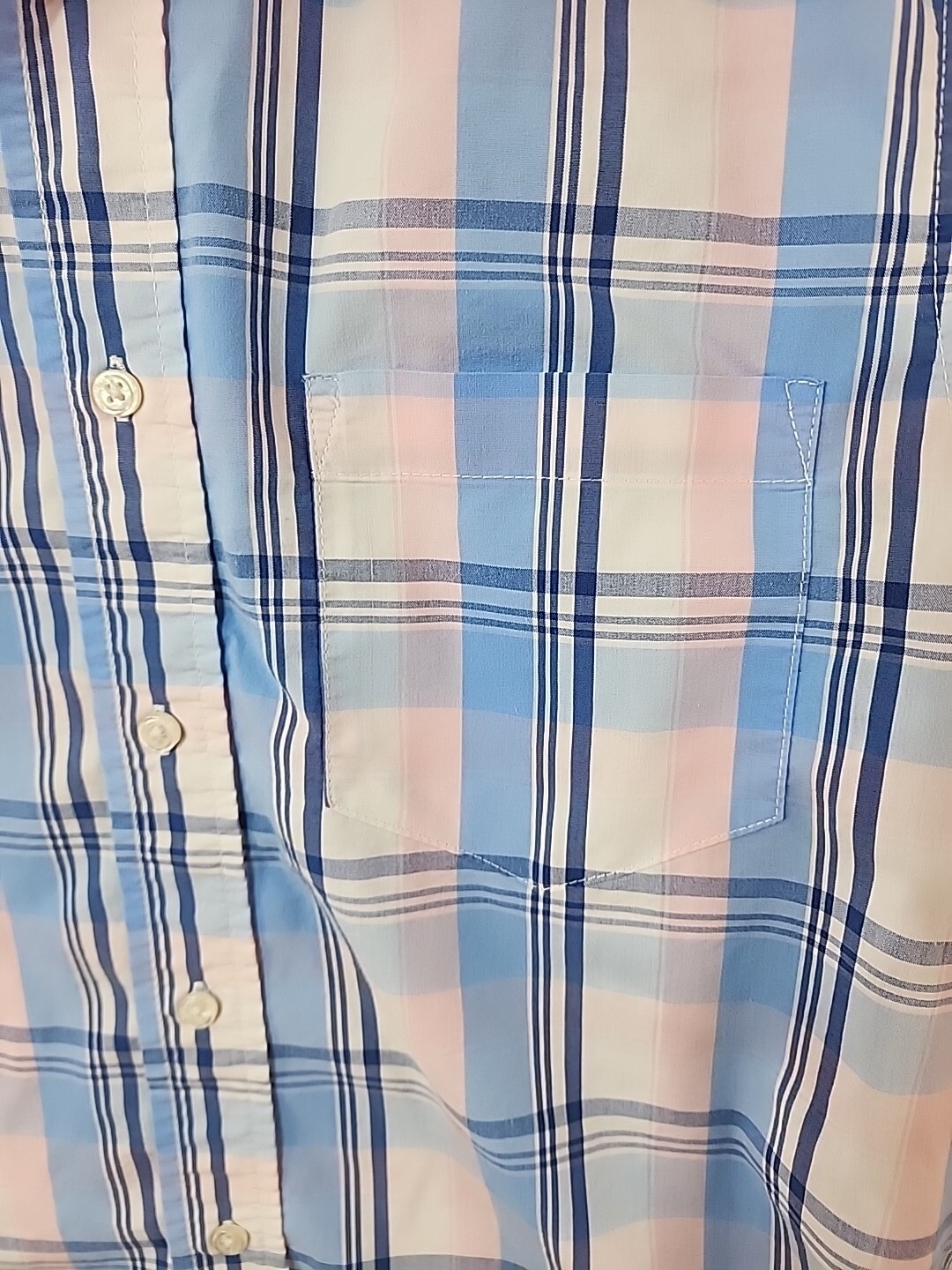 как выглядит George Mens Medium Blue Plaid Classic Fit Short Sleeve Shirt фото