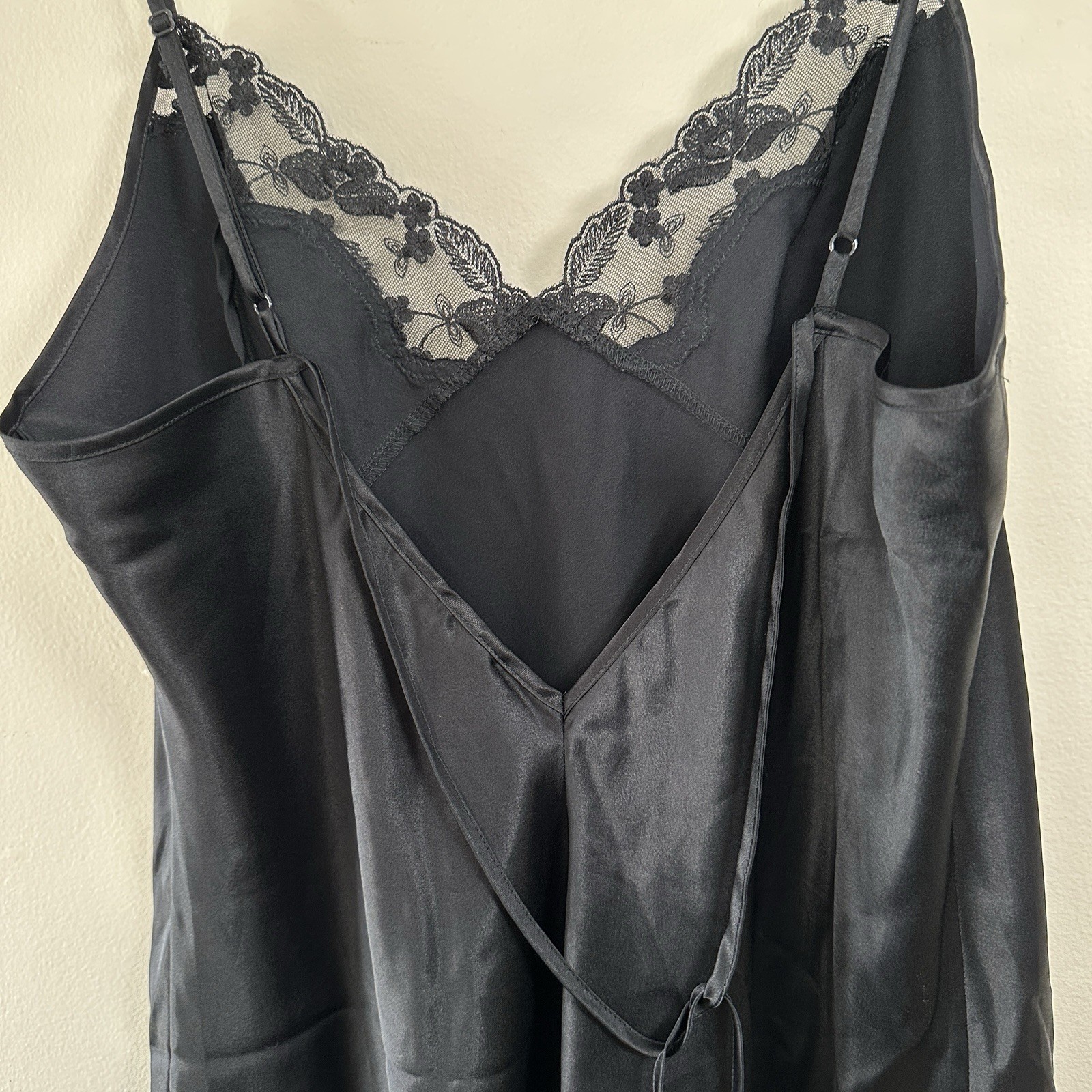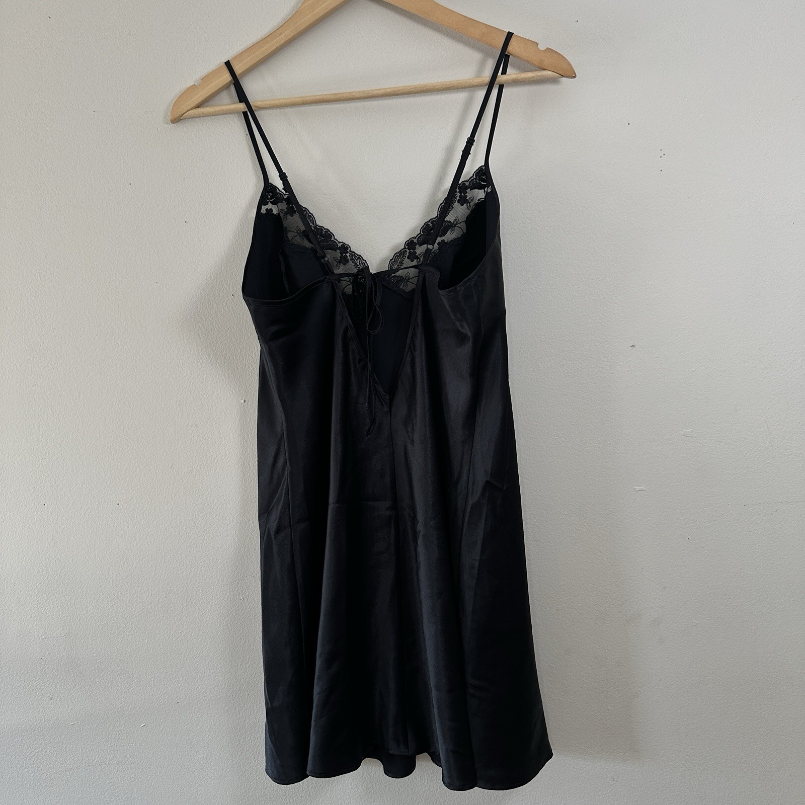 как выглядит Vintage Victorias Secret Black Lace Trim Mini Slip Dress Nightie - Sz L фото