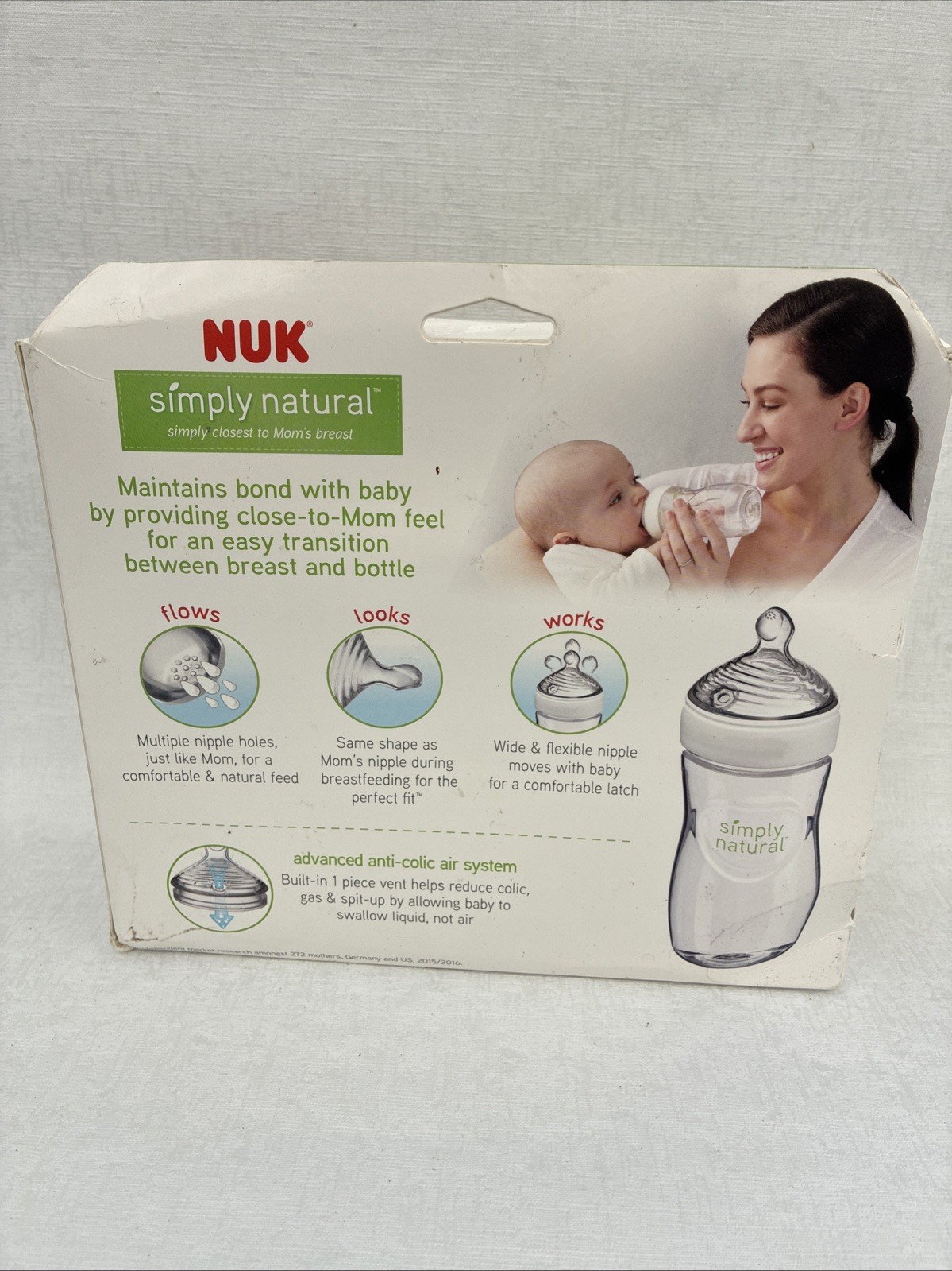 Nuk Simply Natural baby bottles 9 oz three bottles With medium flow nipples 1 M
