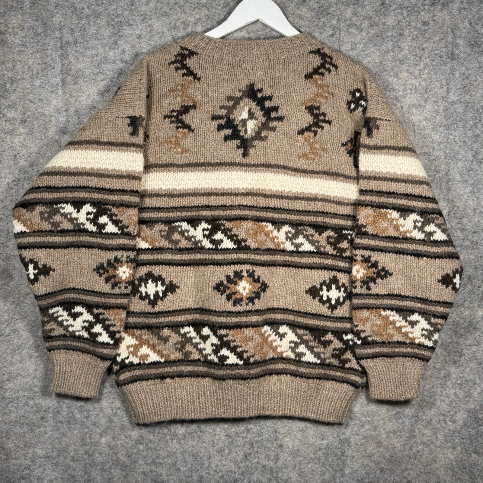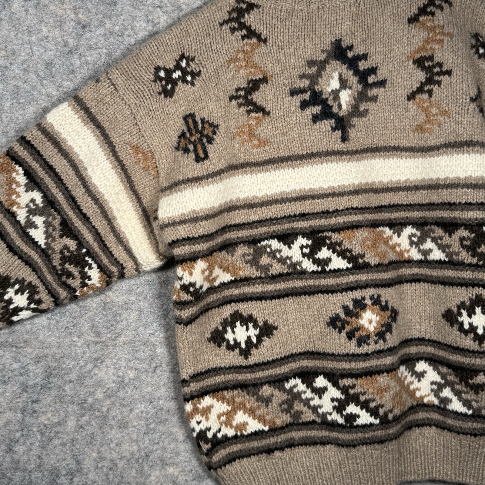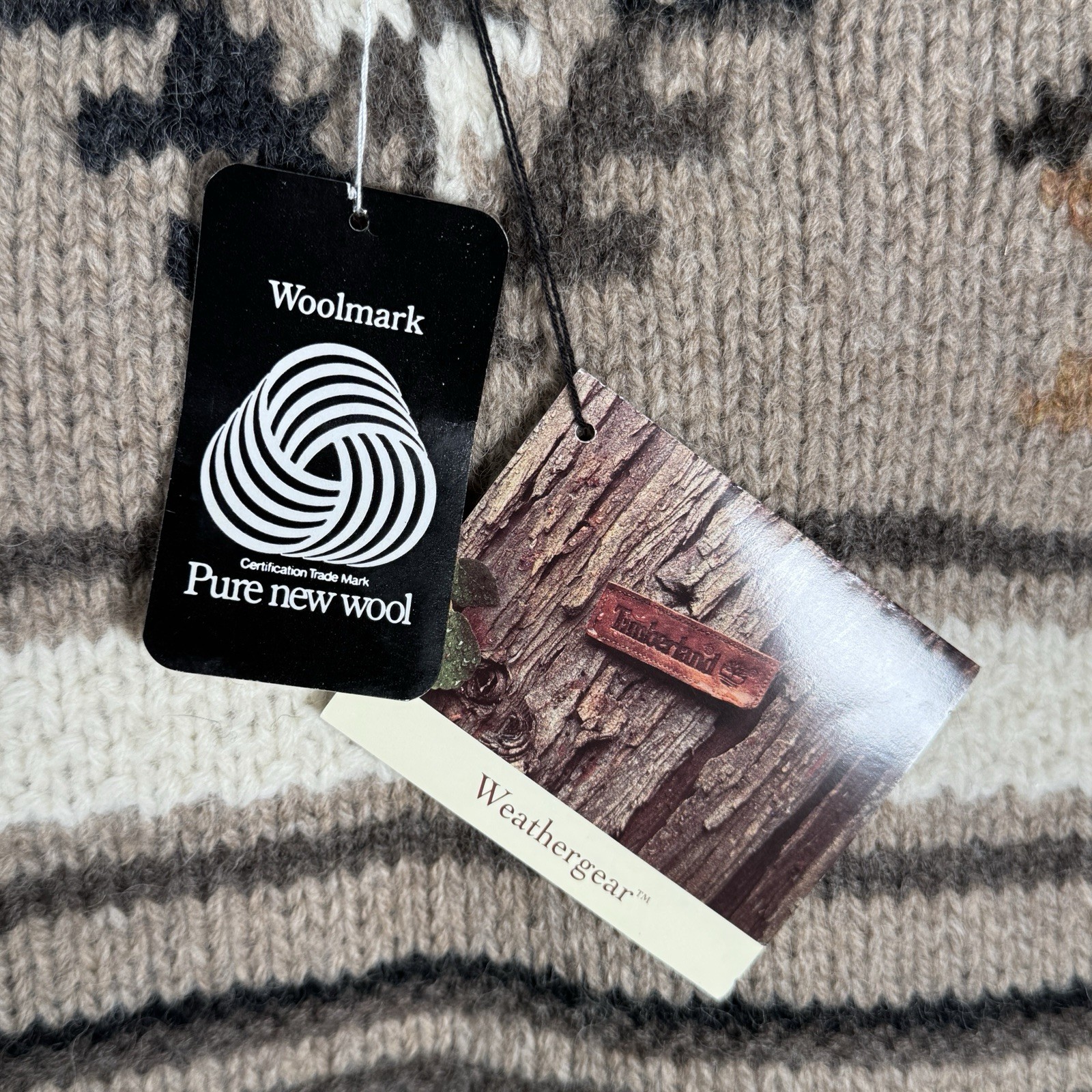 как выглядит Vintage NWT Timberland 100 Wool Hand Knit Sweater Size S 24x27 Geometric Brown фото