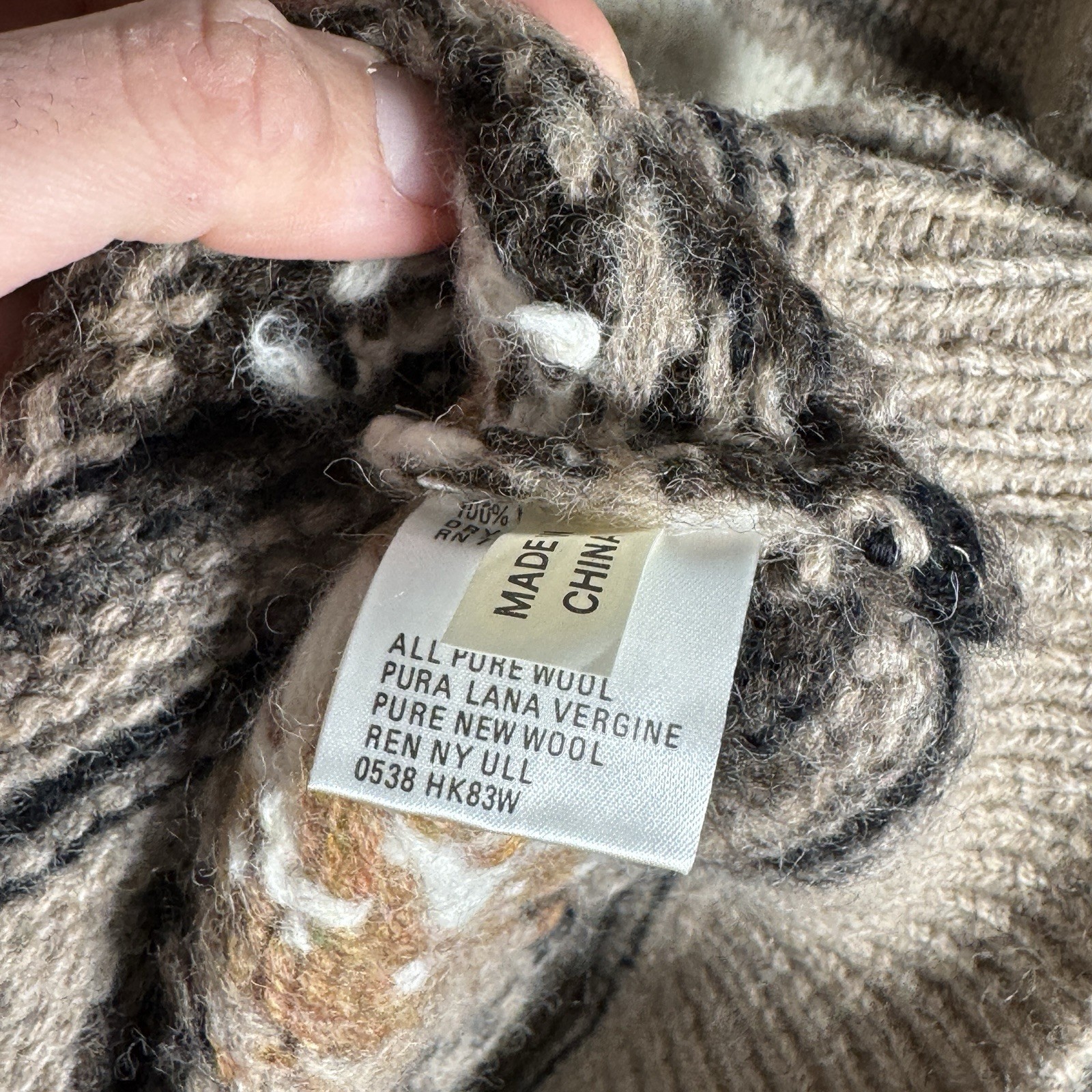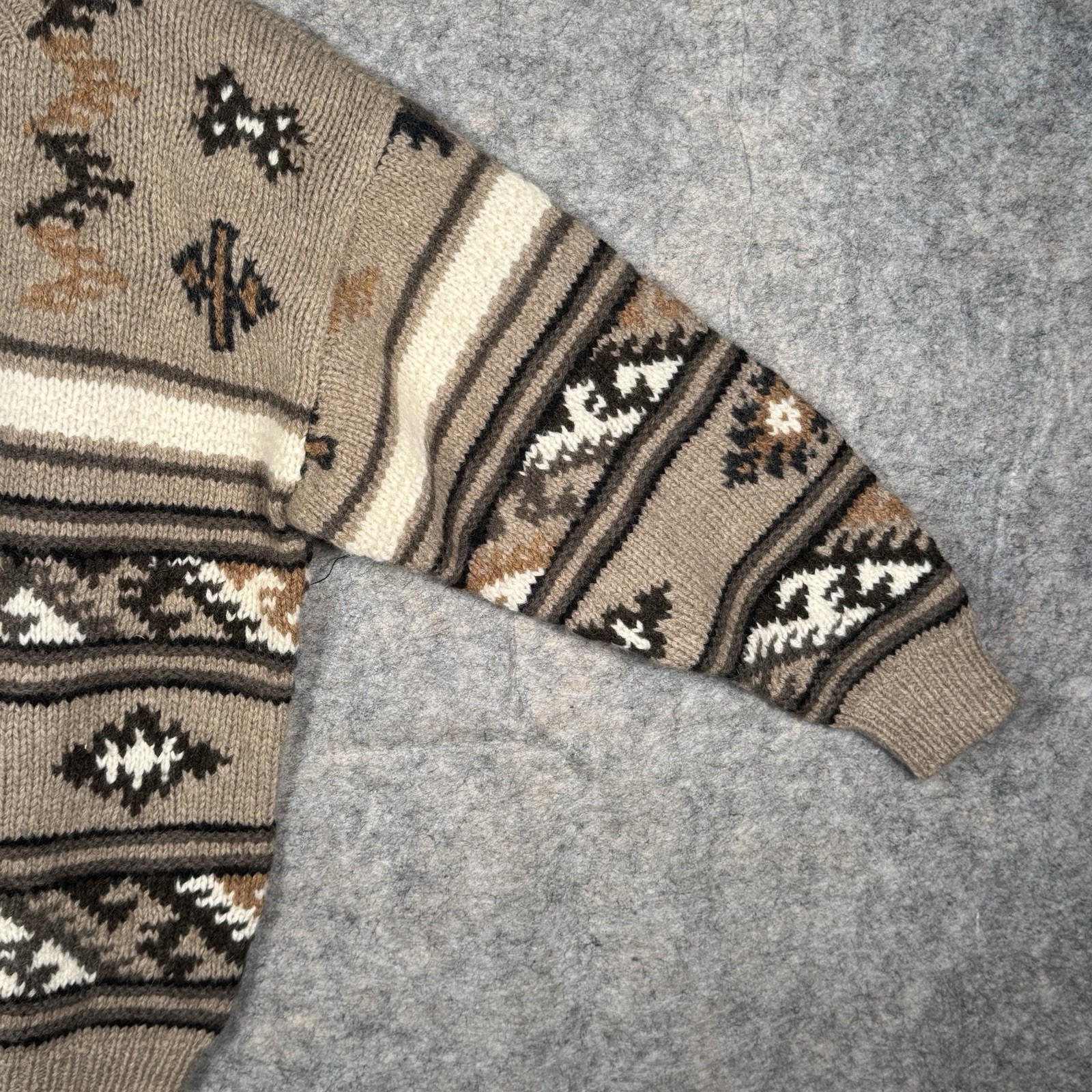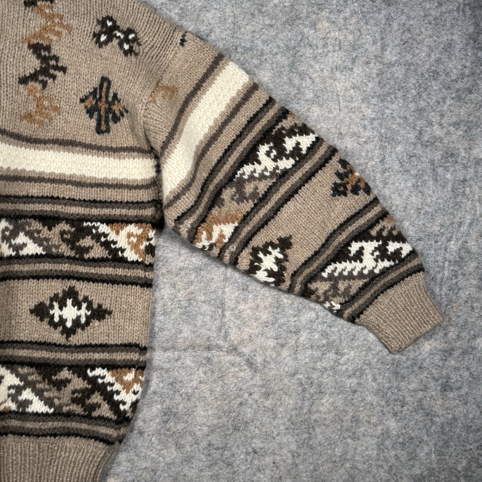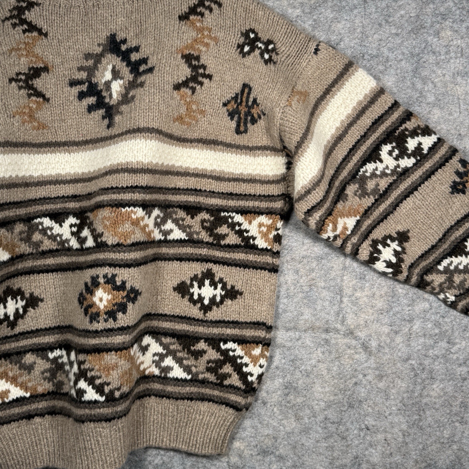 как выглядит Vintage NWT Timberland 100 Wool Hand Knit Sweater Size S 24x27 Geometric Brown фото