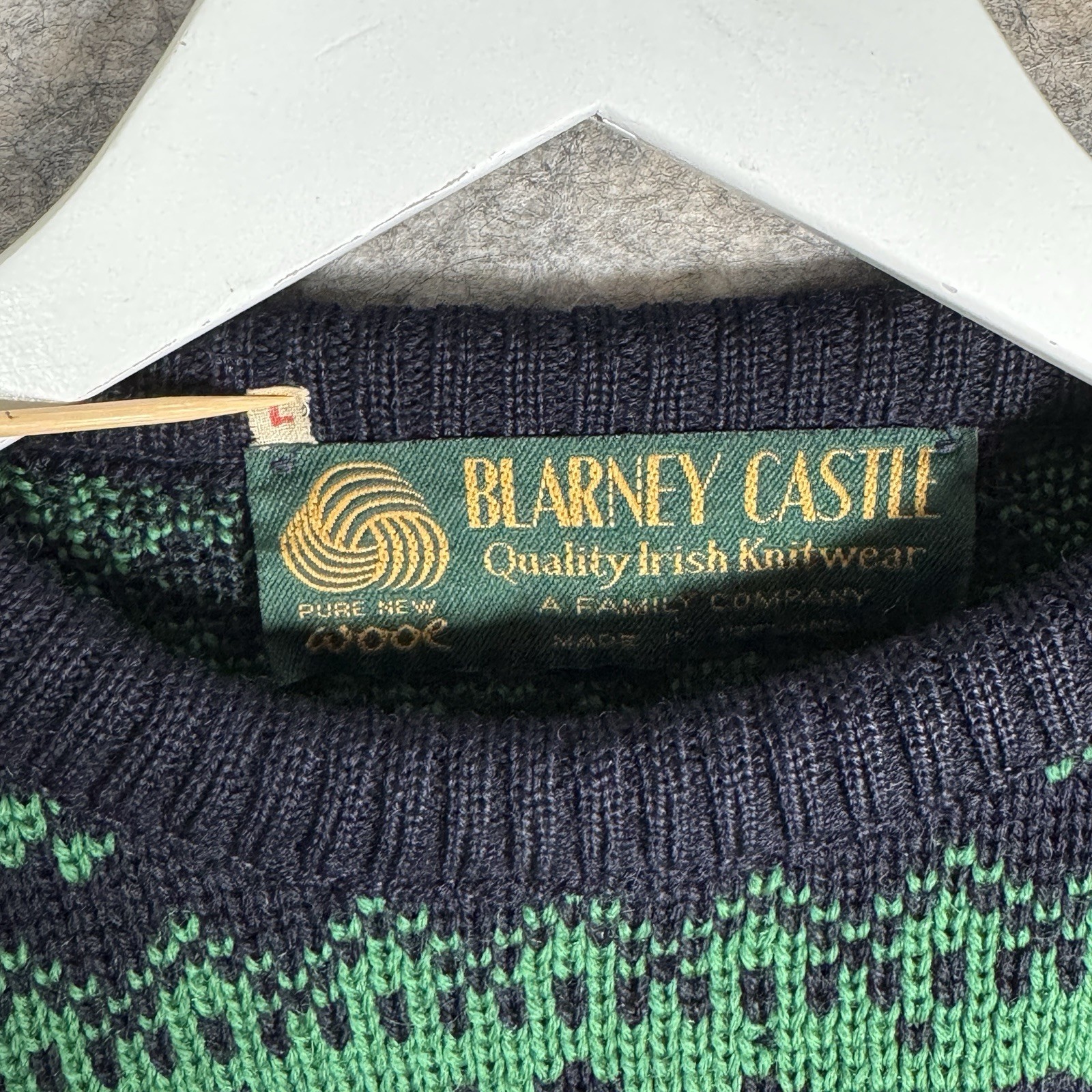 как выглядит Vintage Womens Blarney Castle Ireland Knitwear Wool Sweater Size L Clover Green фото