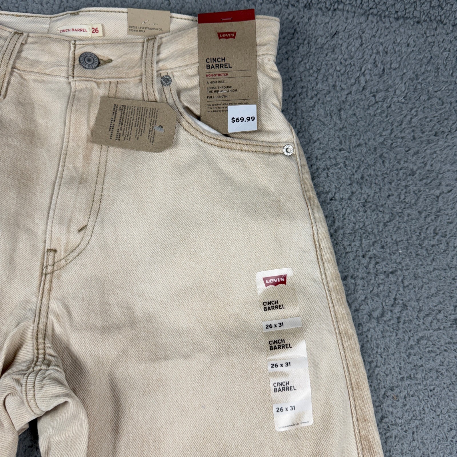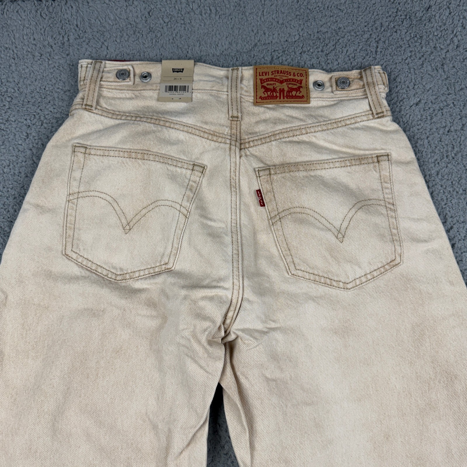 как выглядит Levis Cinch Barrel Jeans Womens 26x31 Khaki Tan Denim High Rise фото