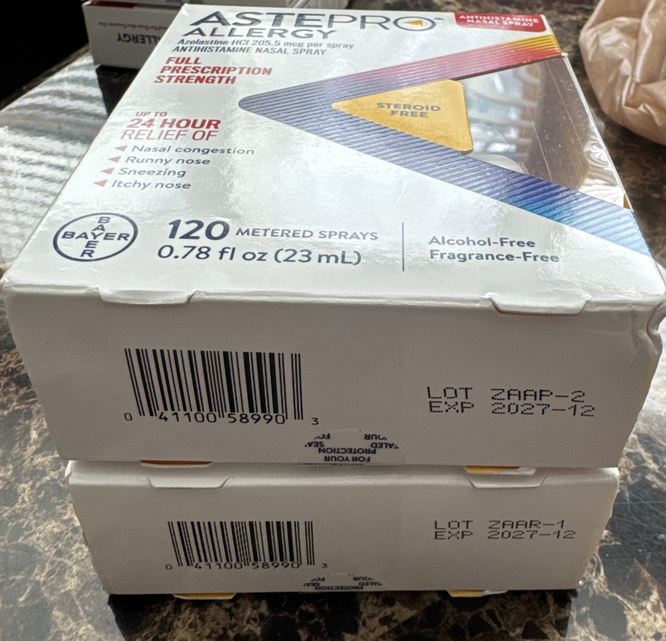 Lot of 2 Astepro Allergy 24 Hr Metered Sprays 120 Sprays Exp. 12/2027
