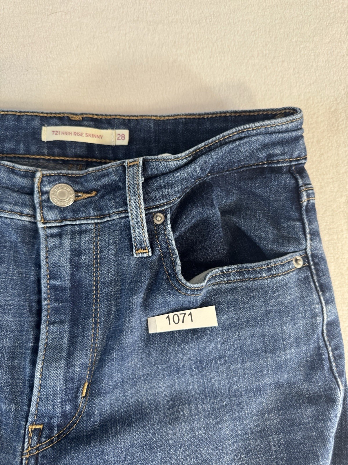как выглядит Levis 721 Womens 28 High Rise Skinny Dark Wash Blue Distressed Denim Jeans фото