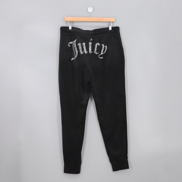 NWT JUICY COUTURE OG Big Bling Velour Joggers Black Liquorice Size L