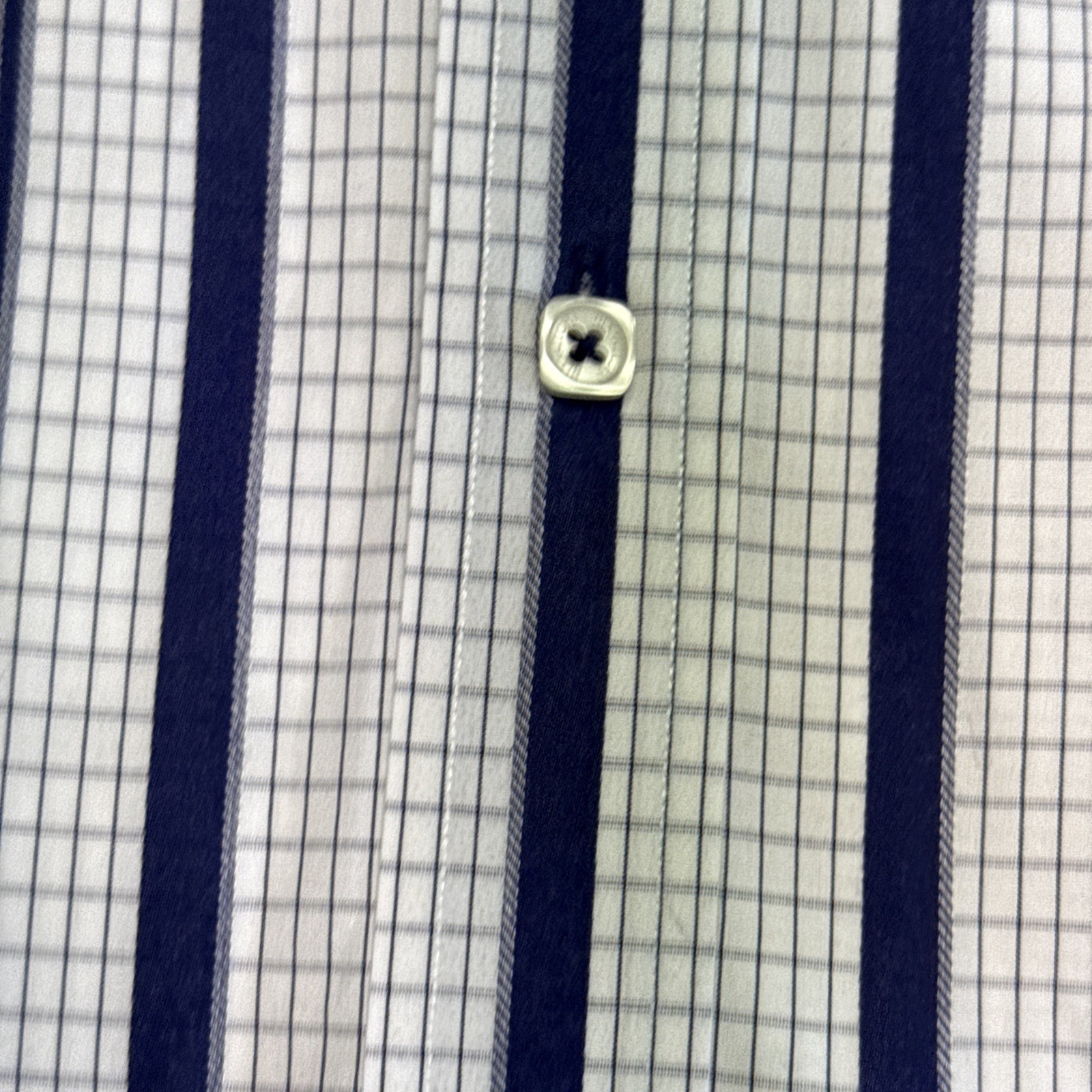 как выглядит BUGATCHI Button Shirt Mens L Shaped Fit White Purple фото