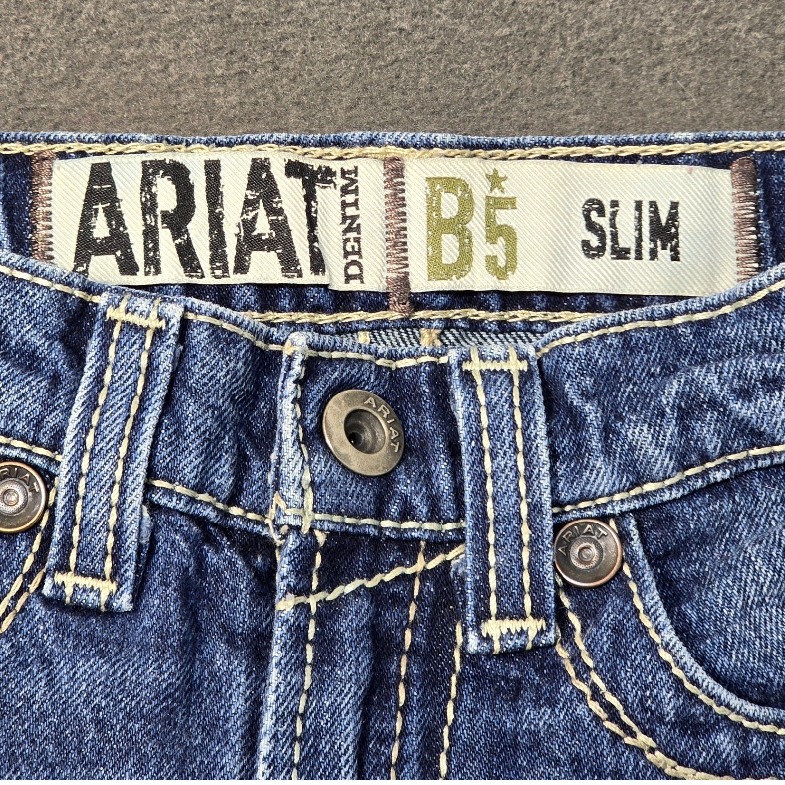 Ariat B5 Slim Boys Straight Leg Jean Medium Wash Distressed Western Denim Size 7