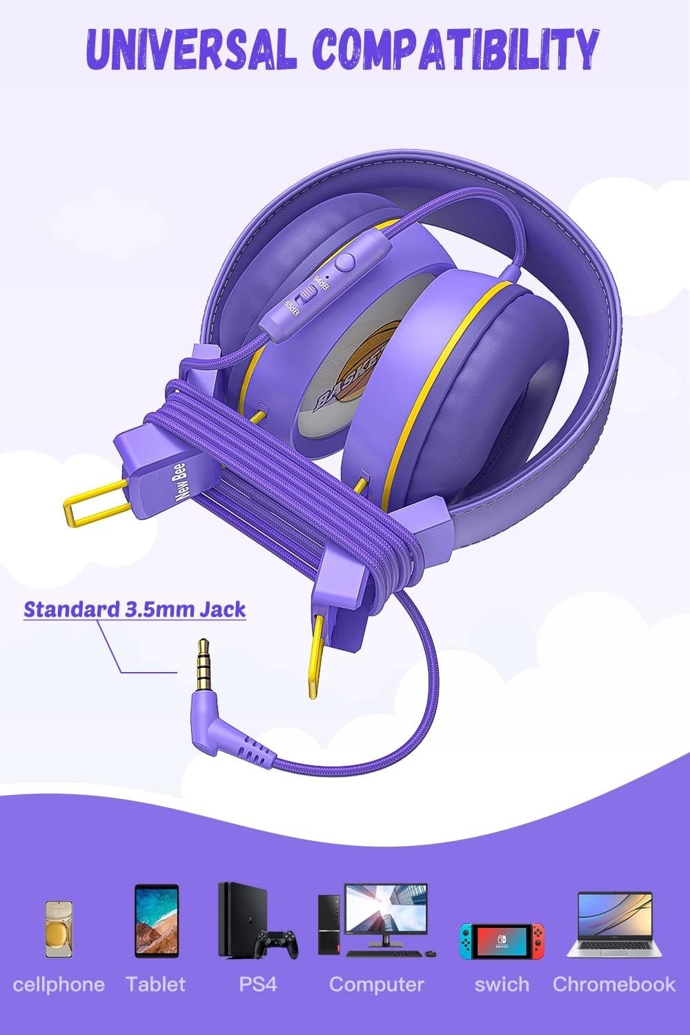 Kids Headphones for School with Microphone KH20 HD Stereo Safe Volume Limited...