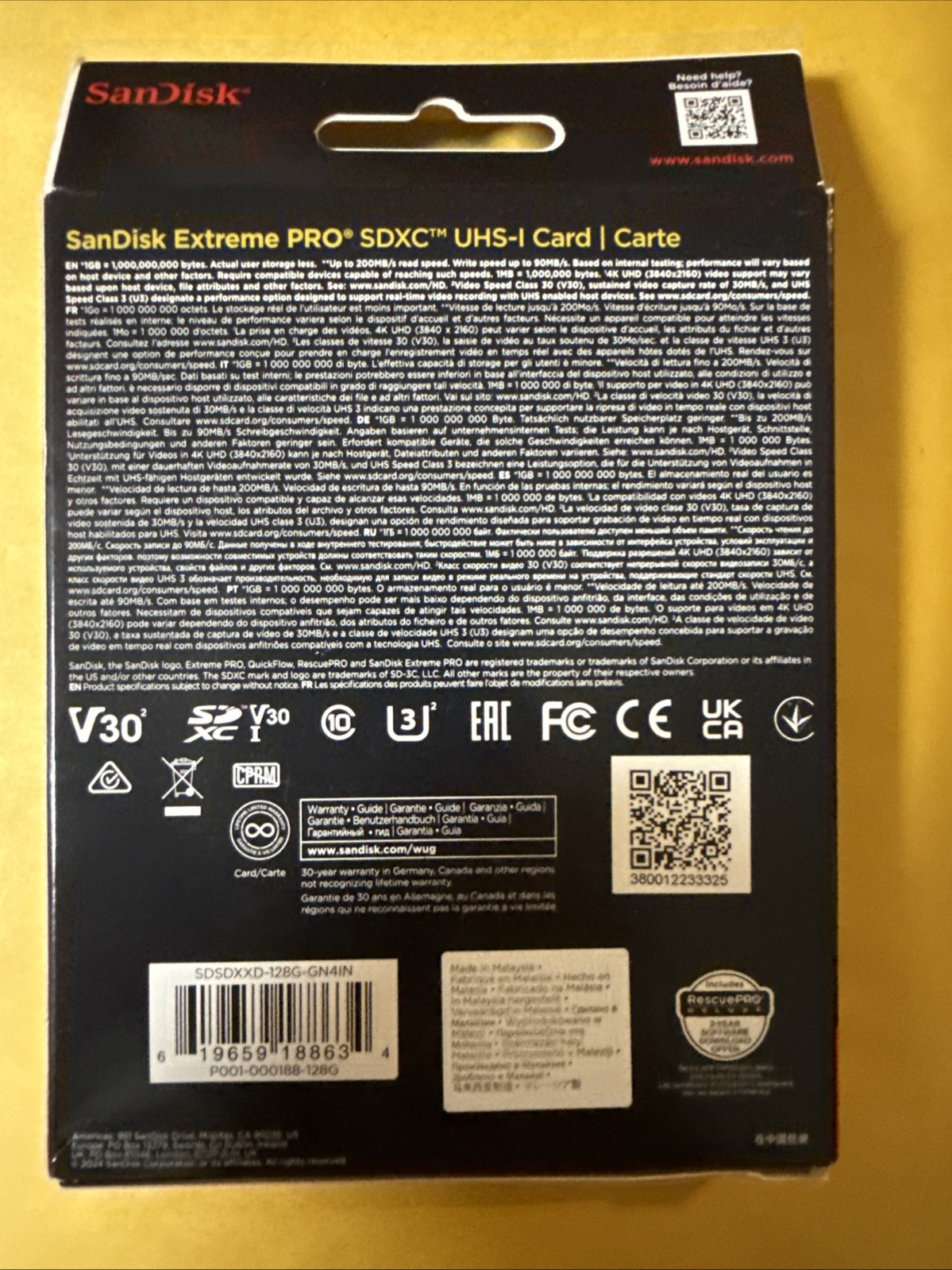 SanDisk Extreme PRO 128GB UHS-I U3 SDXC 200MB/s 4K Memory Card SDSDXXD-128G