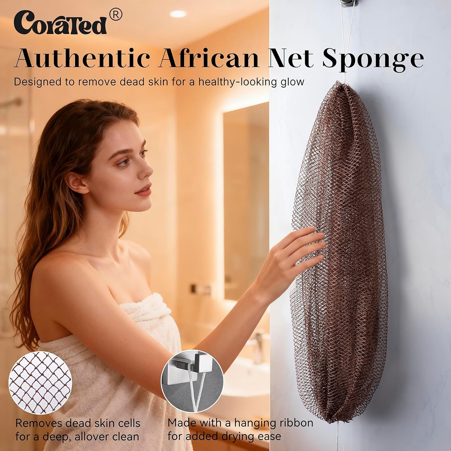 African Net Sponge Authentic, Shower Loofah Exfoliating Bath Sponge, Body Scrubb