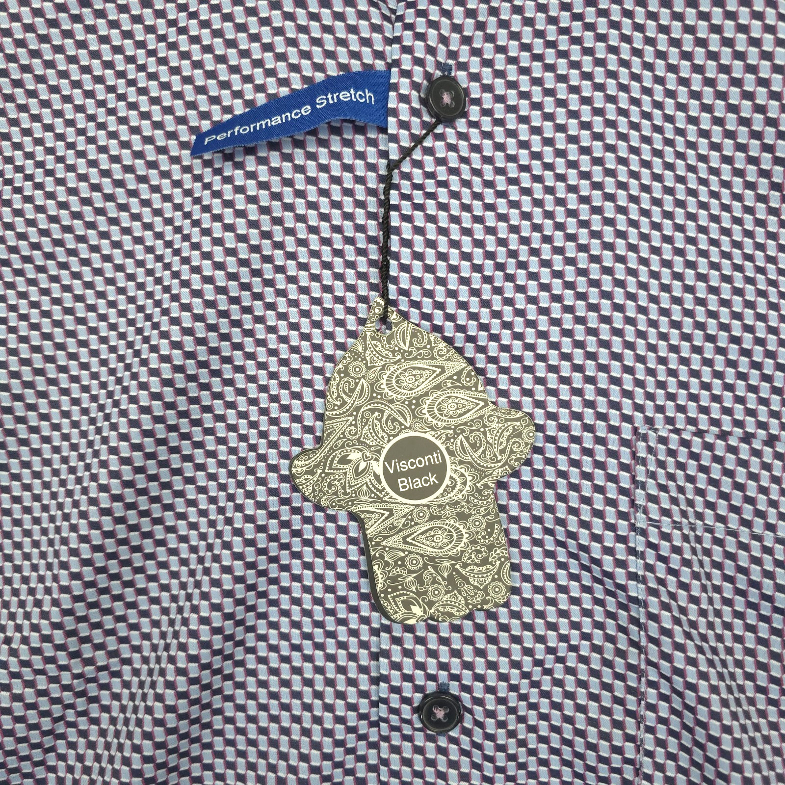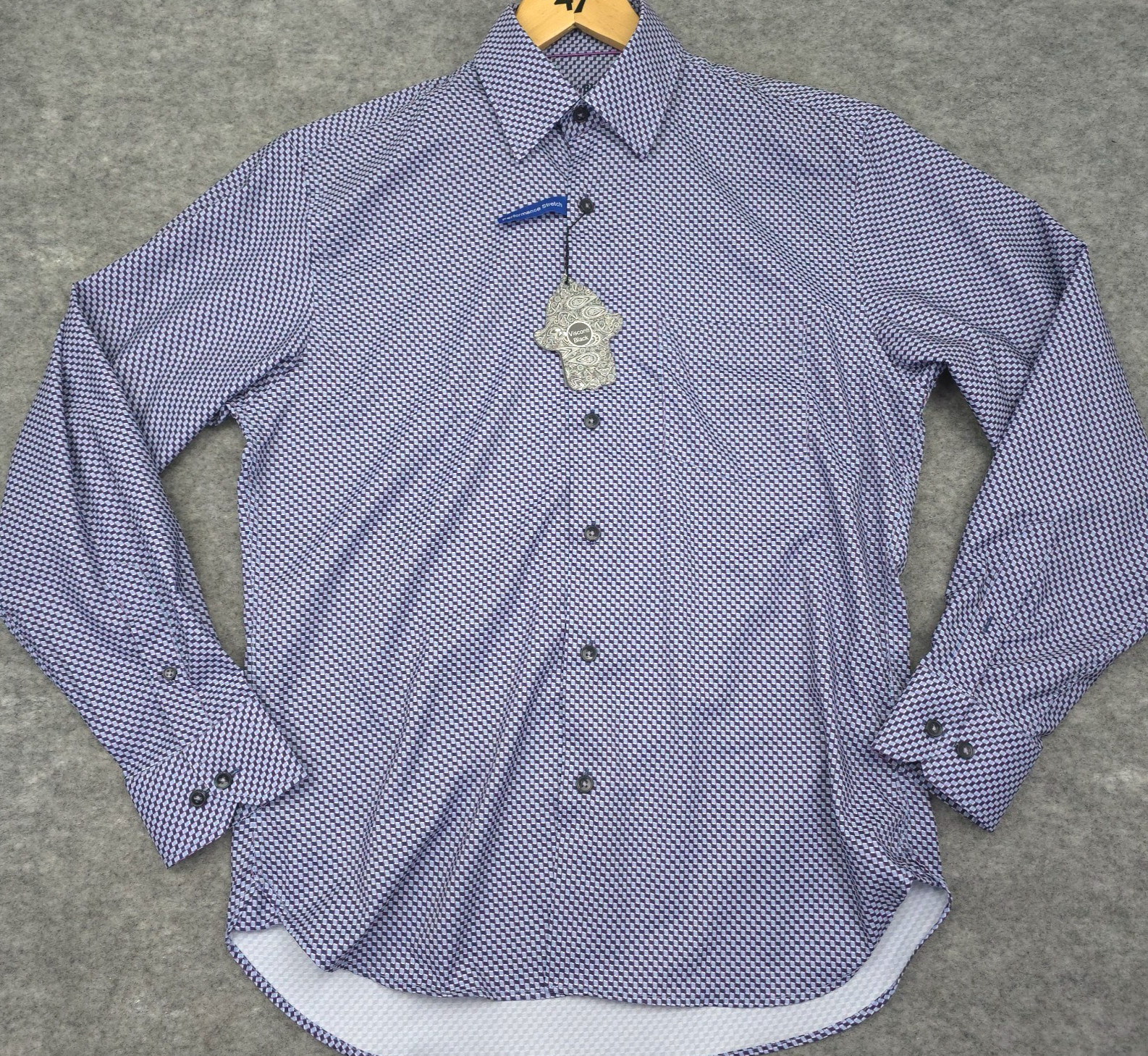 как выглядит Visconti Black Mens Small Long Sleeve Shirt S Navy Geo Print Stretch NWT 125 фото