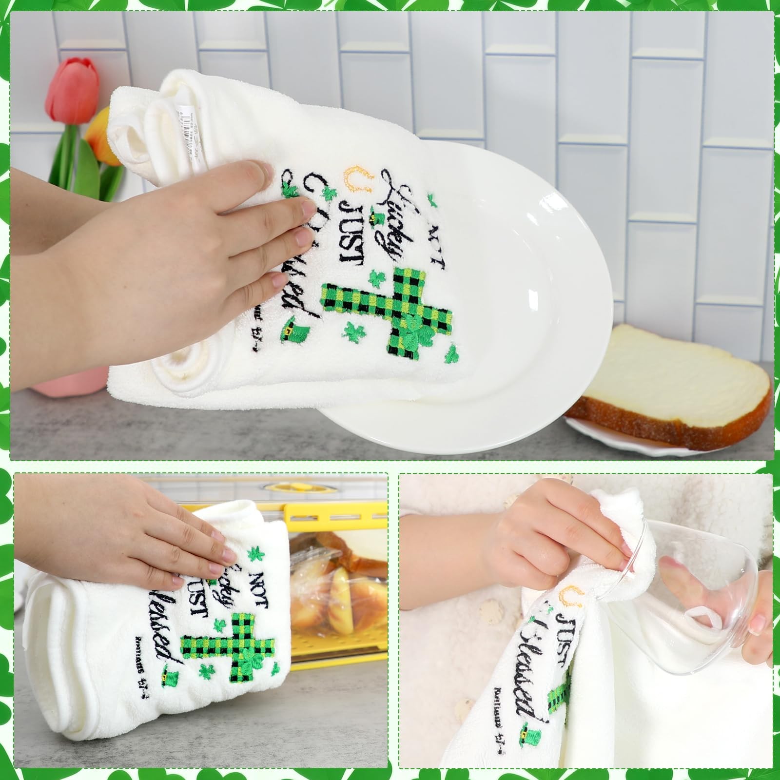 2Pcs St. Patrick's Day Kitchen Towels Coral Velvet Highly White,green