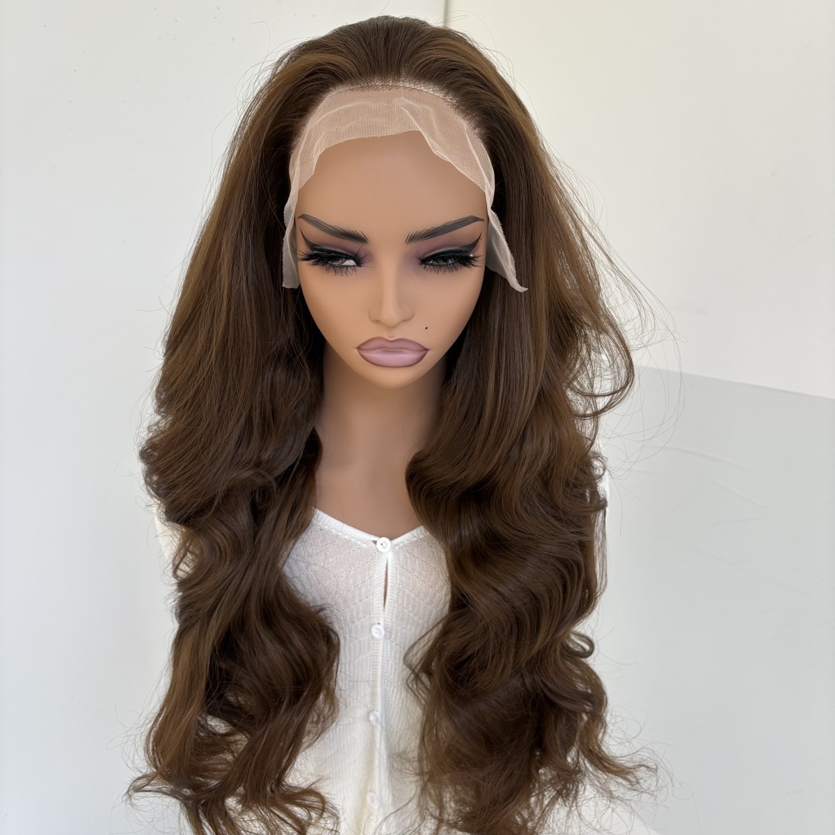 как выглядит Heat Resistant Hair Lace Front Wig Long Wavy Layered Light brown Soft фото