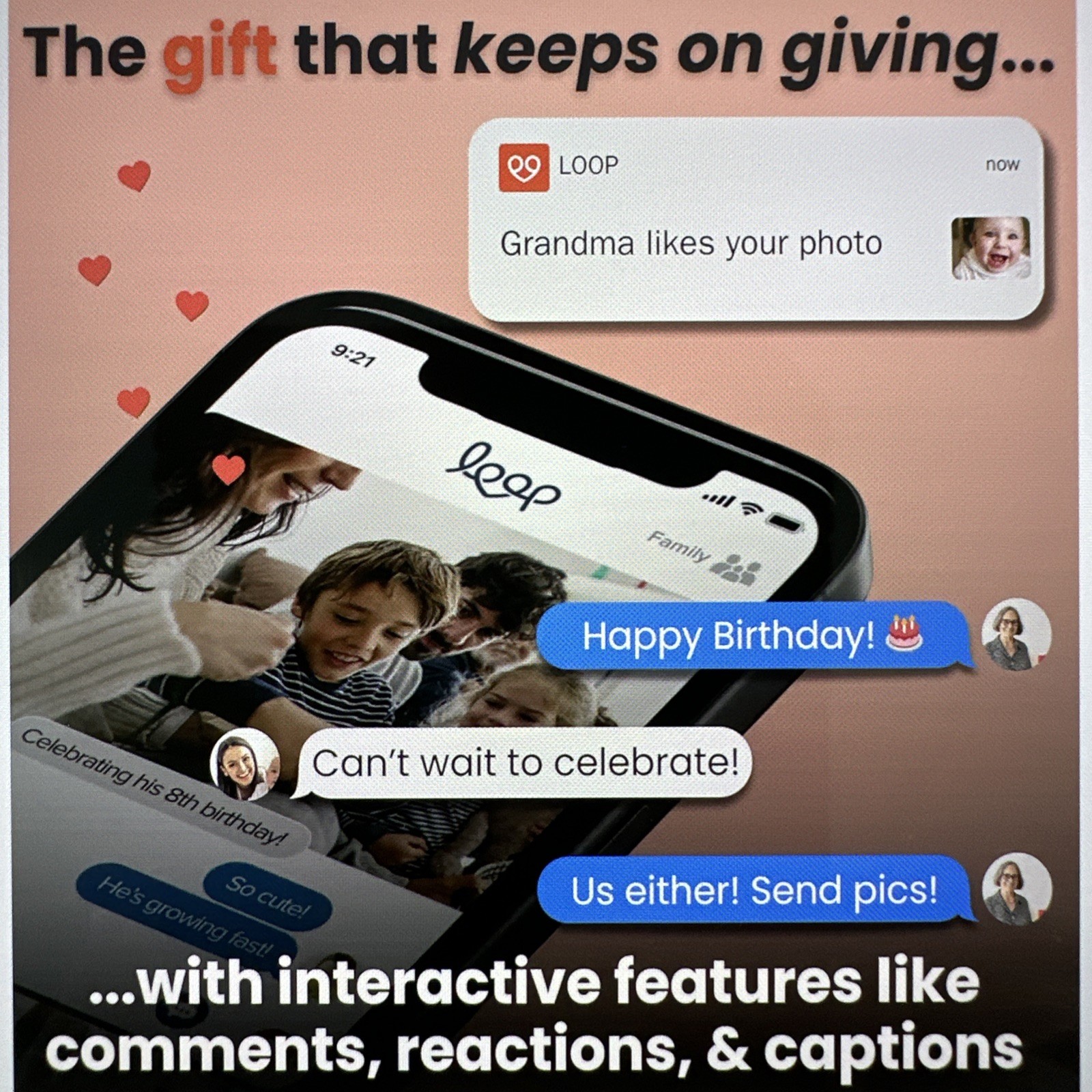 Loop WiFi Digital Picture Frame, Touch Screen, 10 Display, App, Family Sharing