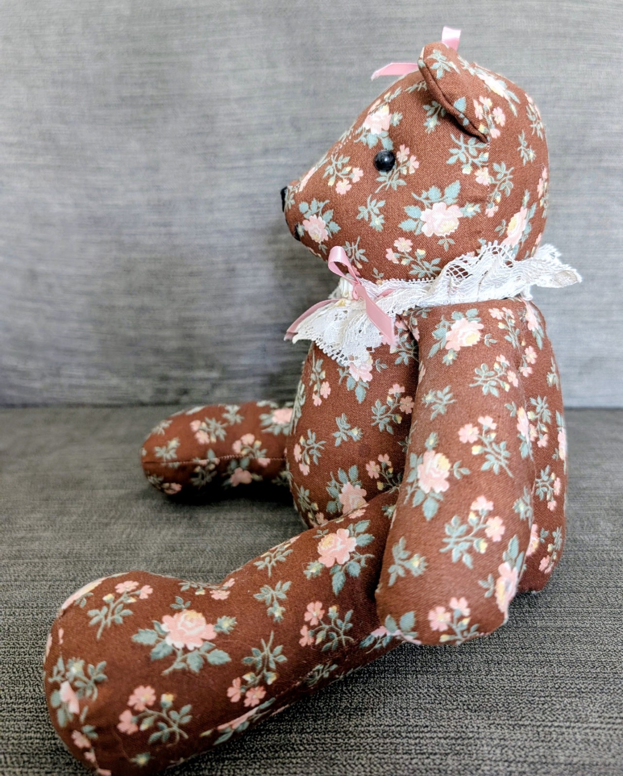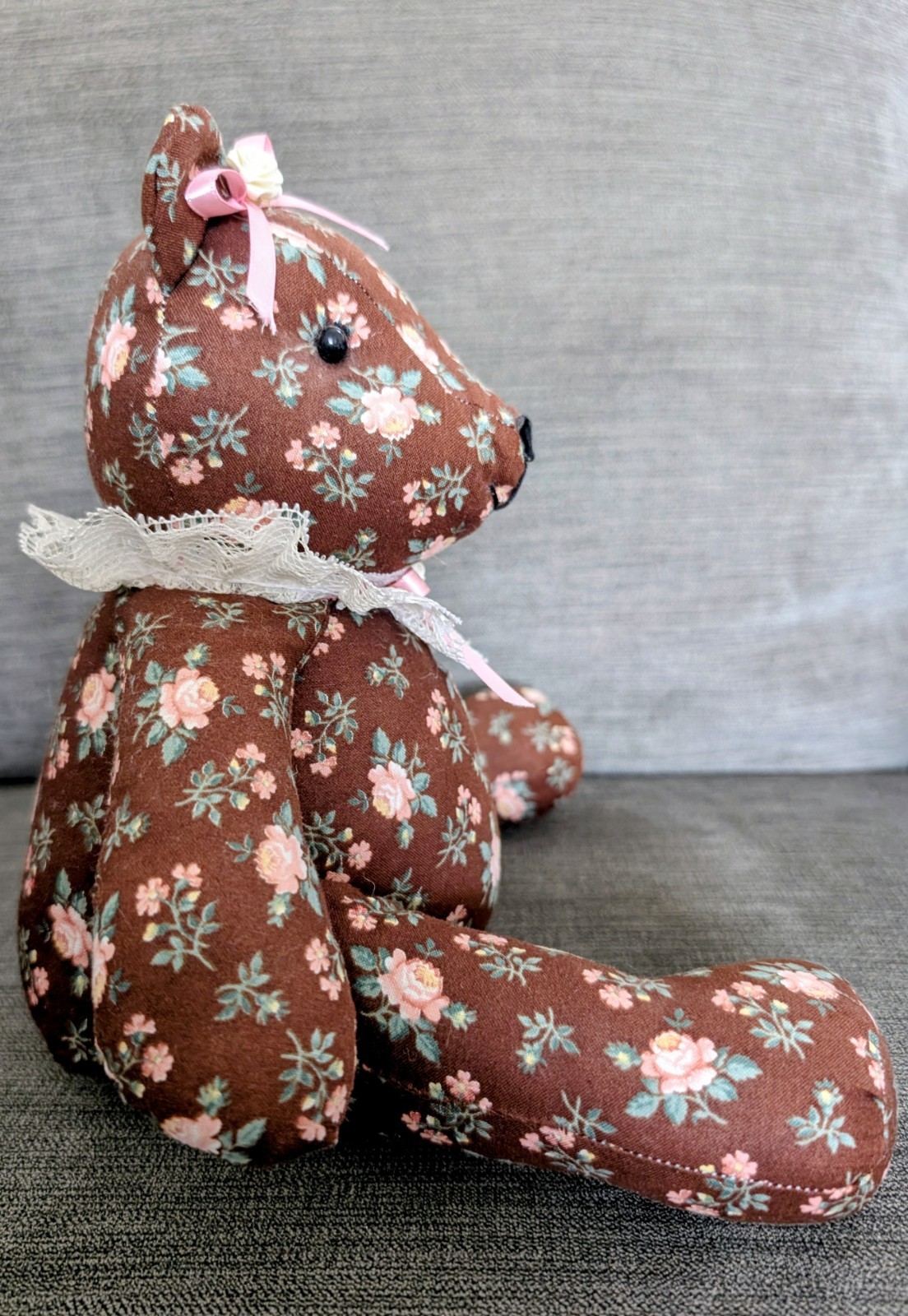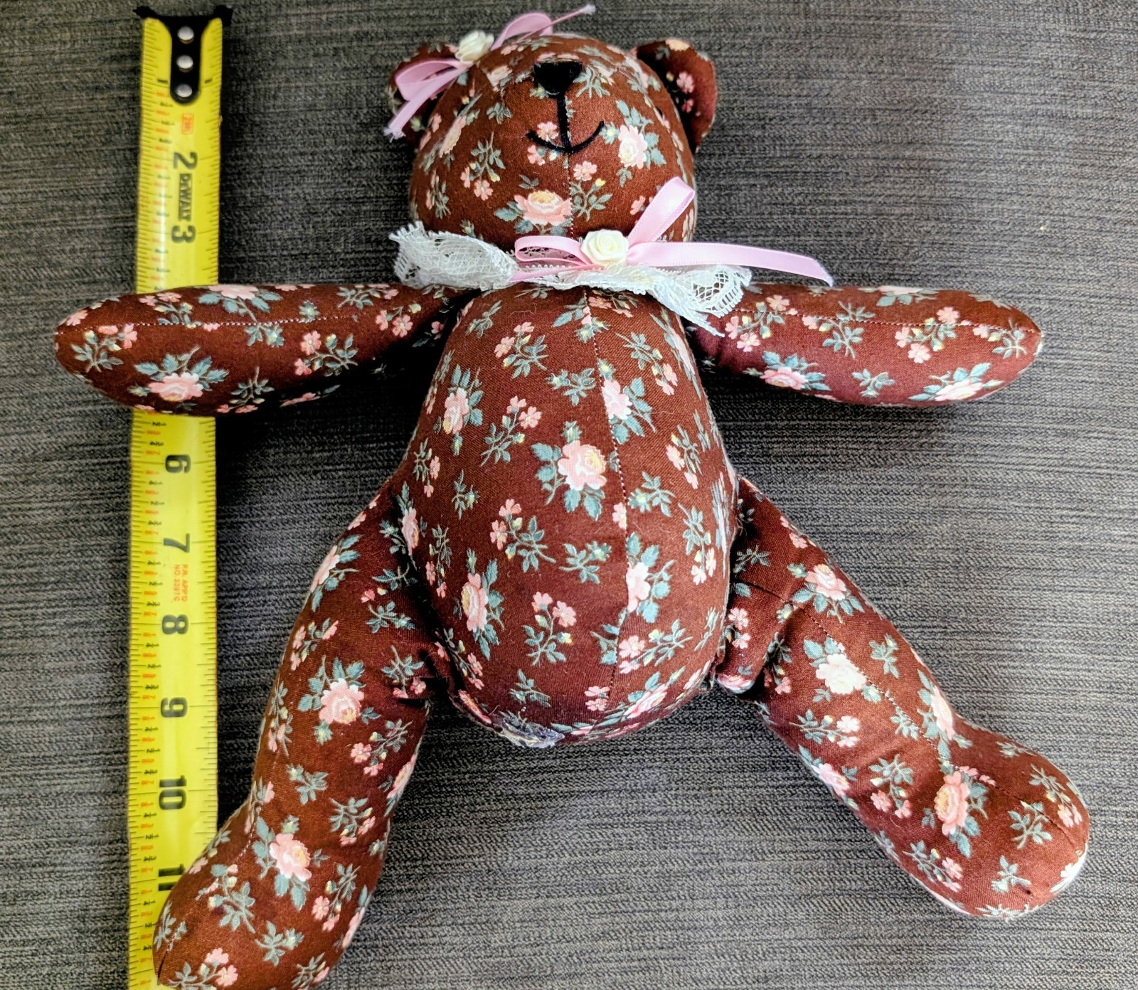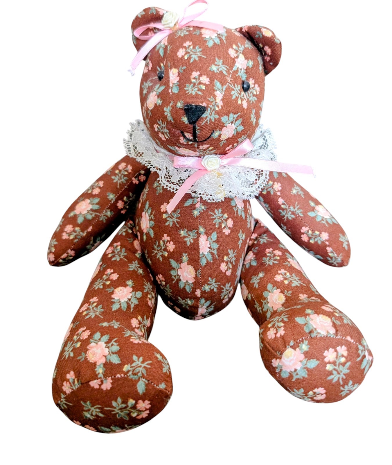Vintage Handmade Floral Stuffed Teddy Bear 12 Inches