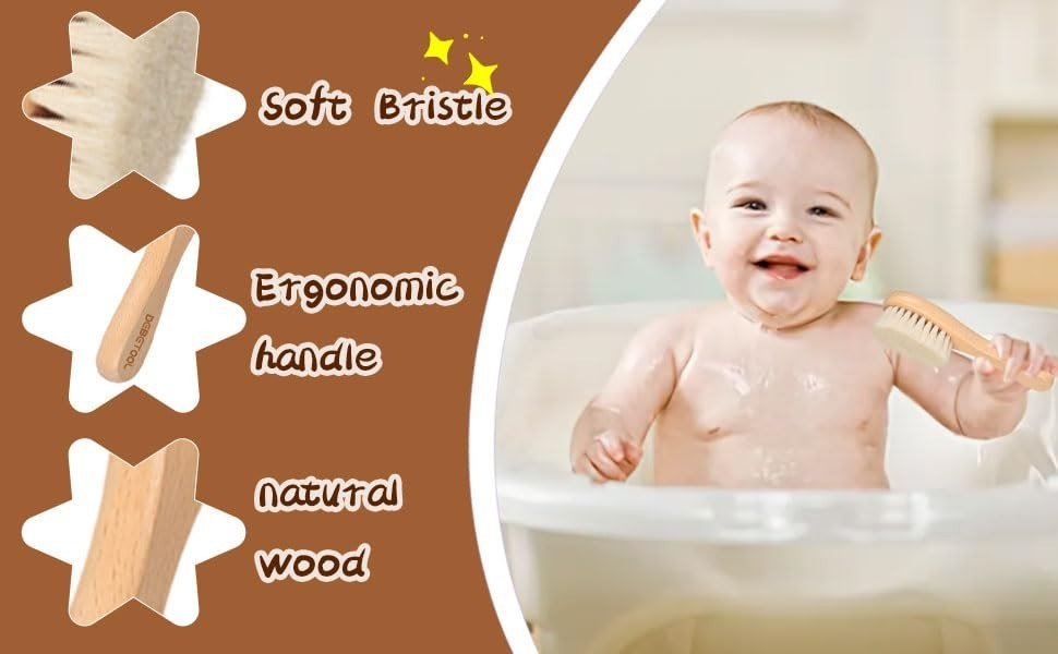 Newborn Baby Hair Brush 2 Pack Soft Goat Bristle Wooden Cradle Cap Care Set