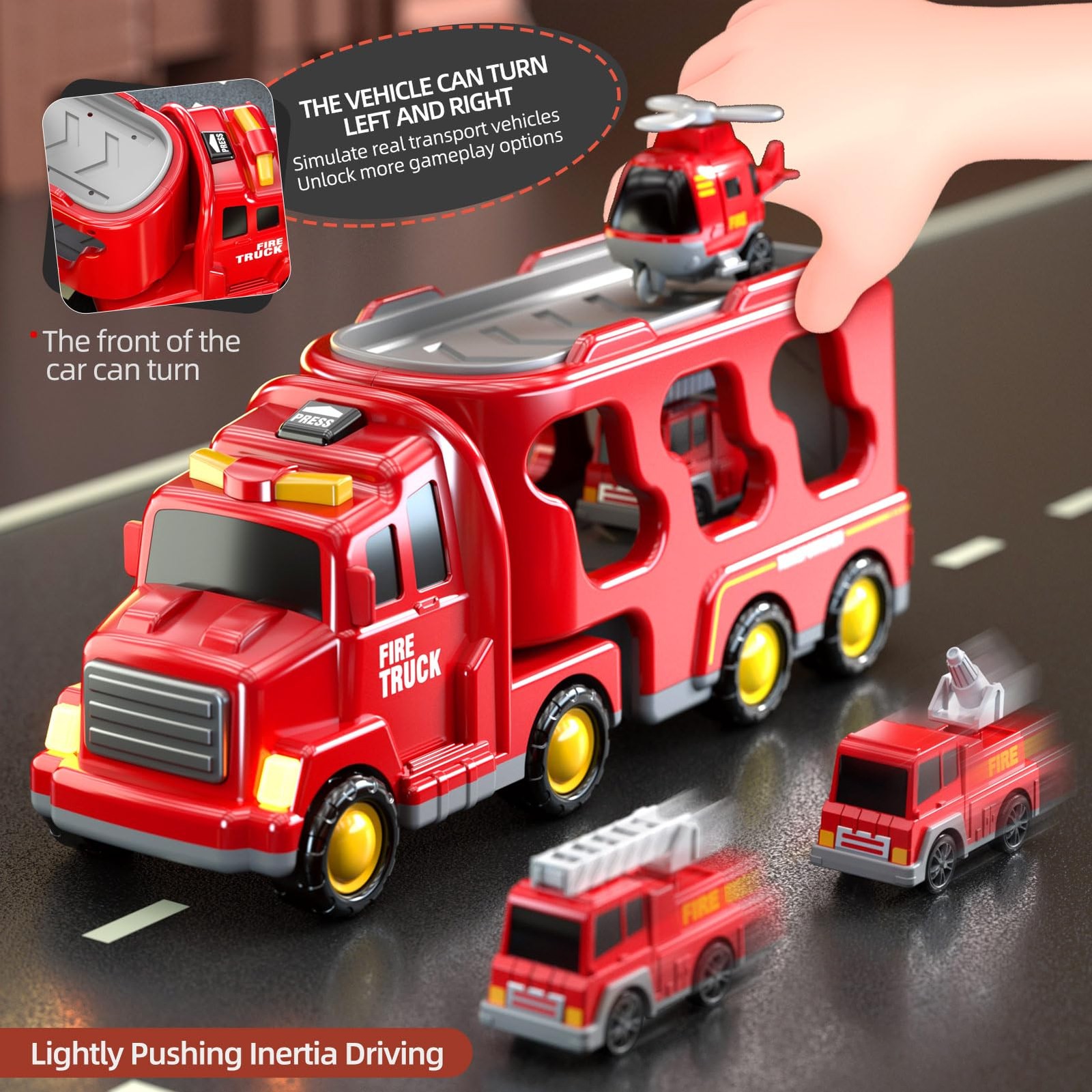 5 in 1 Fire Truck Cars for Toddlers 3-5, Boy Car Truck Toys with Light Sound,...