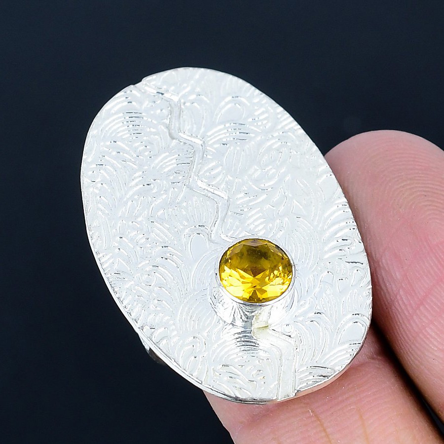 как выглядит Elegant Citrine Gemstone Handmade 925 Sterling Silver Jewelry Ring Size 8 фото