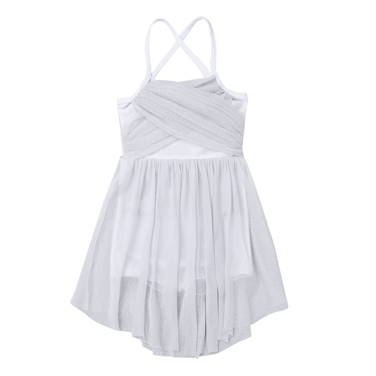 Girls Sleeveless Criss Cross Splice Mesh Leotard Dress Latin Ballet Dancewear