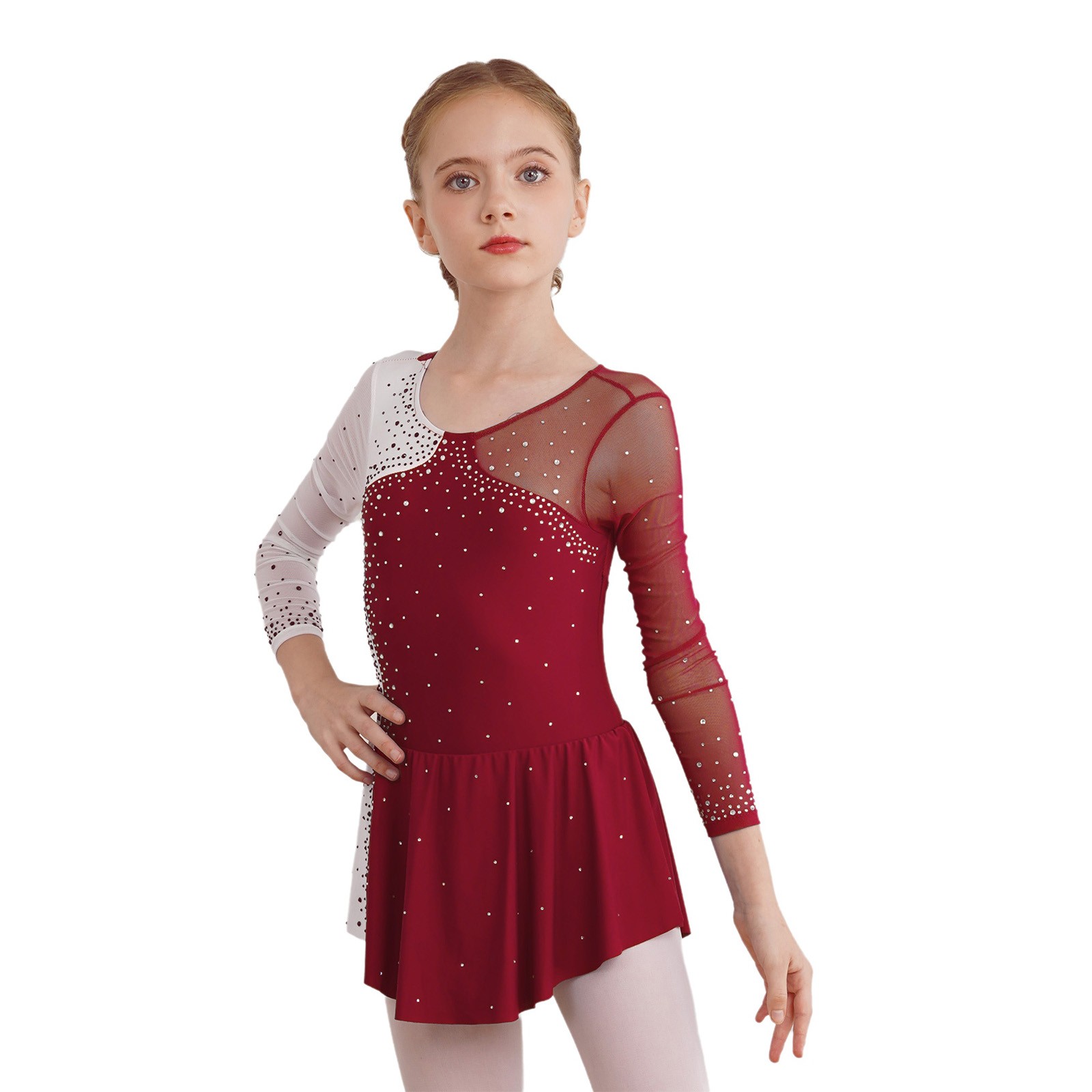 Kids Girls Long Sleeve Figure Ice Skating Dress Winter Sport Performance Costume