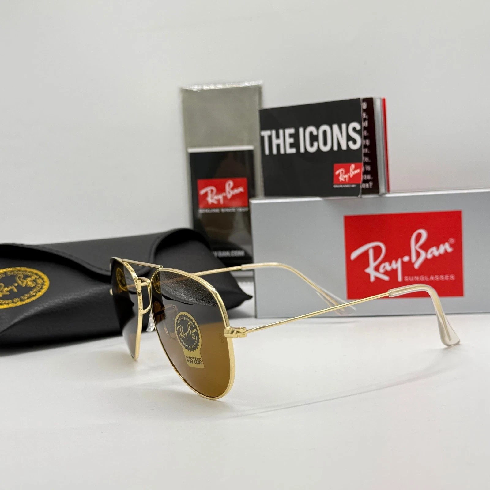 как выглядит Ray-Ban RB3025 Aviator Sunglasses 58mm Classic Gold Frame Polarized Brown Lens фото