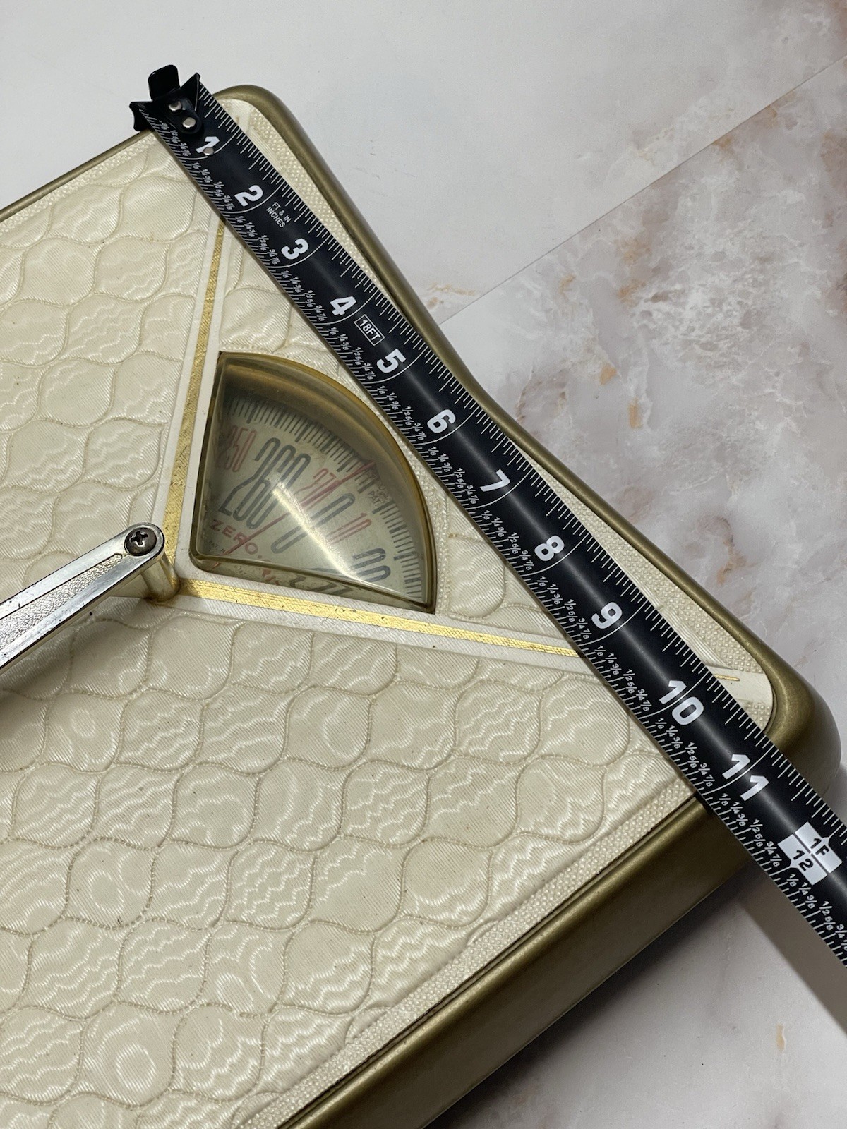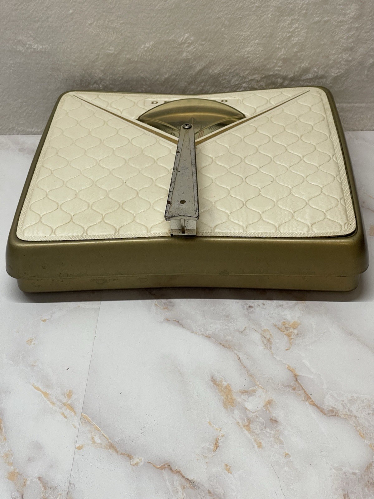как выглядит VTG Detecto Bathroom Scale Arrow Shape Design Cream Gold Metal Vinyl Works фото