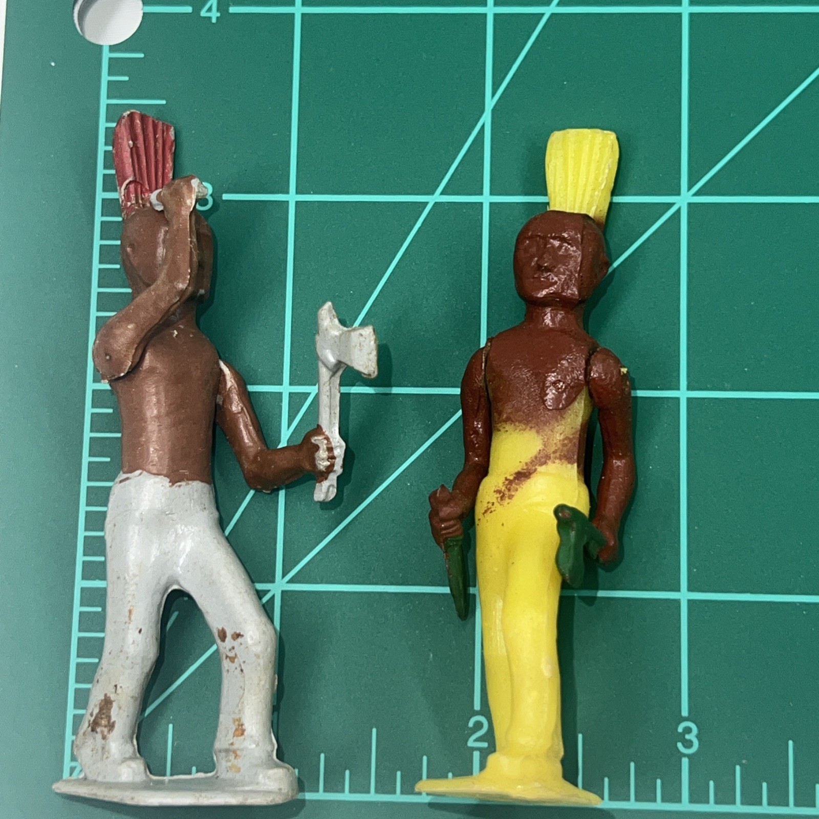 Lot of 2 Vintage Toy Hand Painted Hard Plastic American Indians, Arms Move 3.5