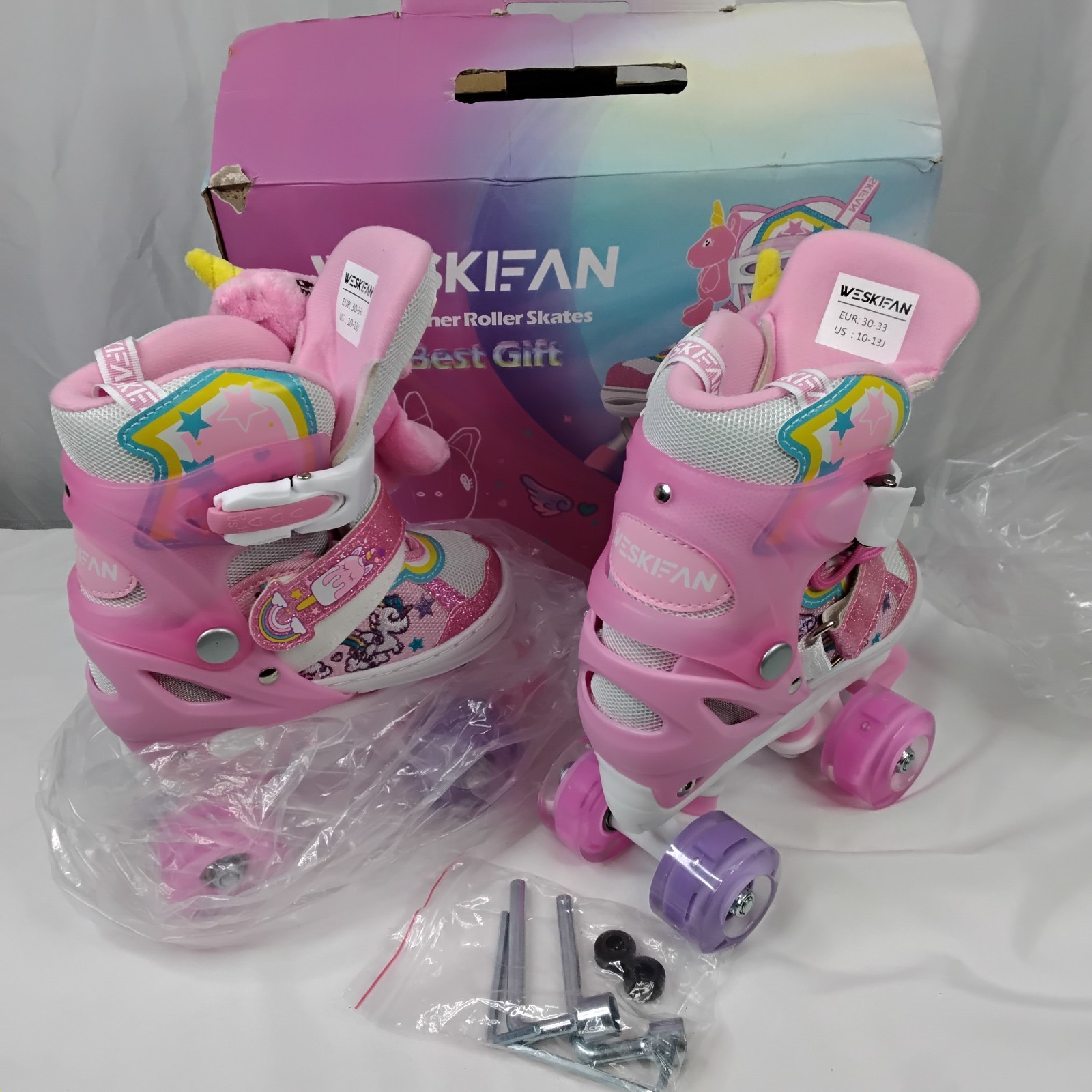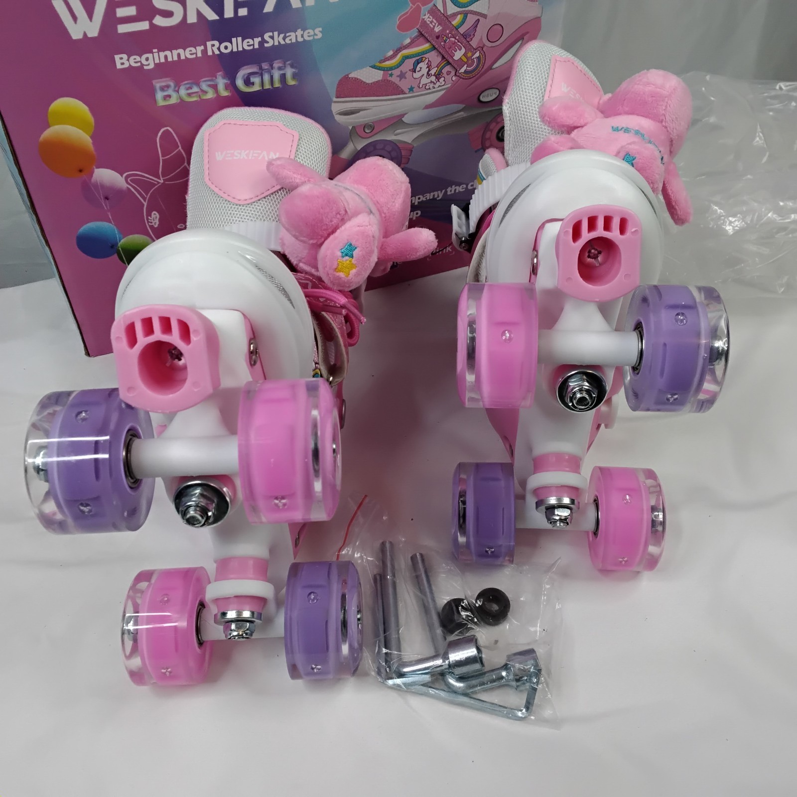 Weskifan Roller Skates Adjustable Girls Kids Toddler PINK 10-13 jelly led wheels