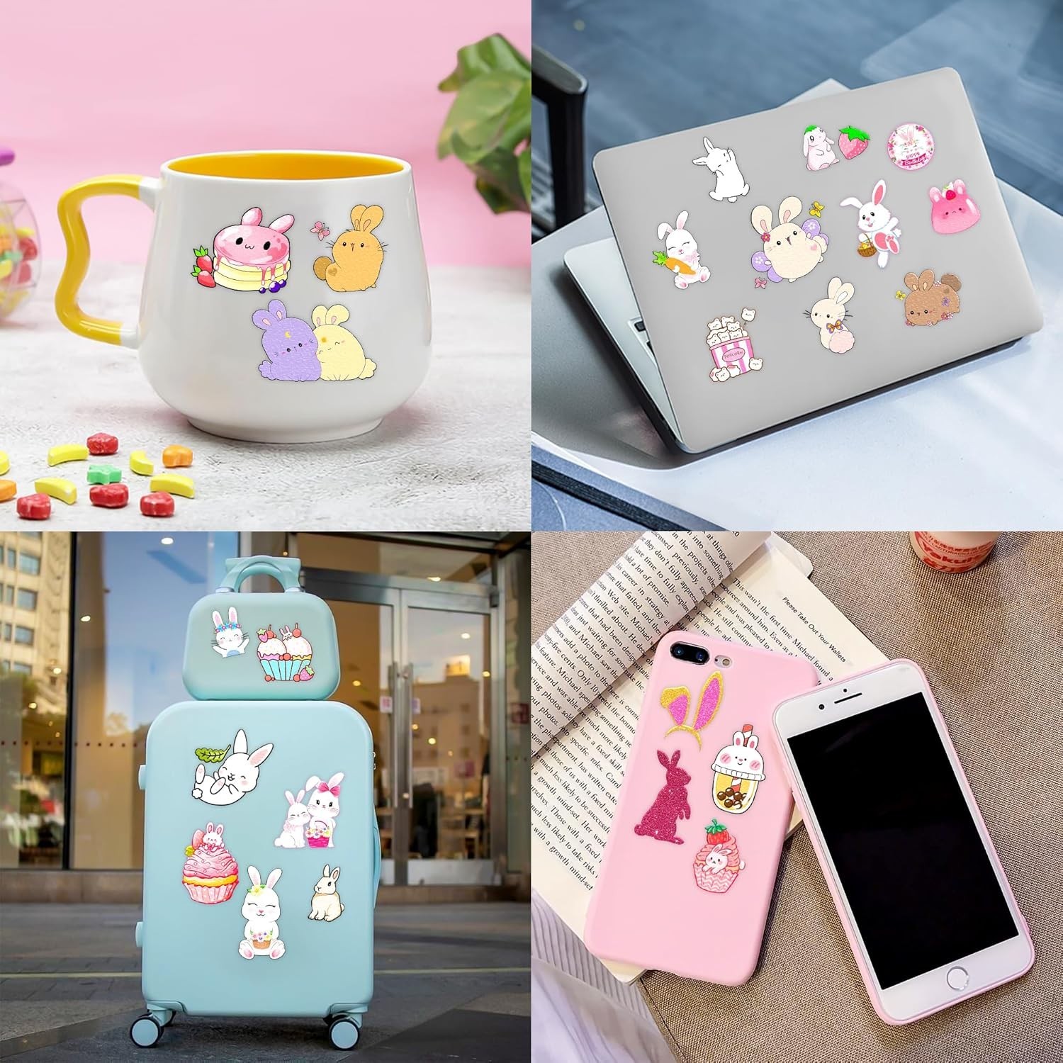 8 Sheets 96PCS Bunny Pre-Cut Temporary Tattoos for Kids Cute Bunny Birthday